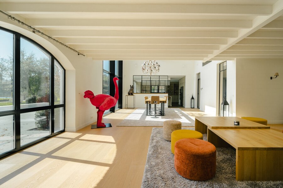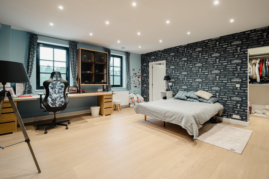 De tweede verdieping is ingericht als speelkamer voor kinderen en bevat een grote polyvalente ruimte.