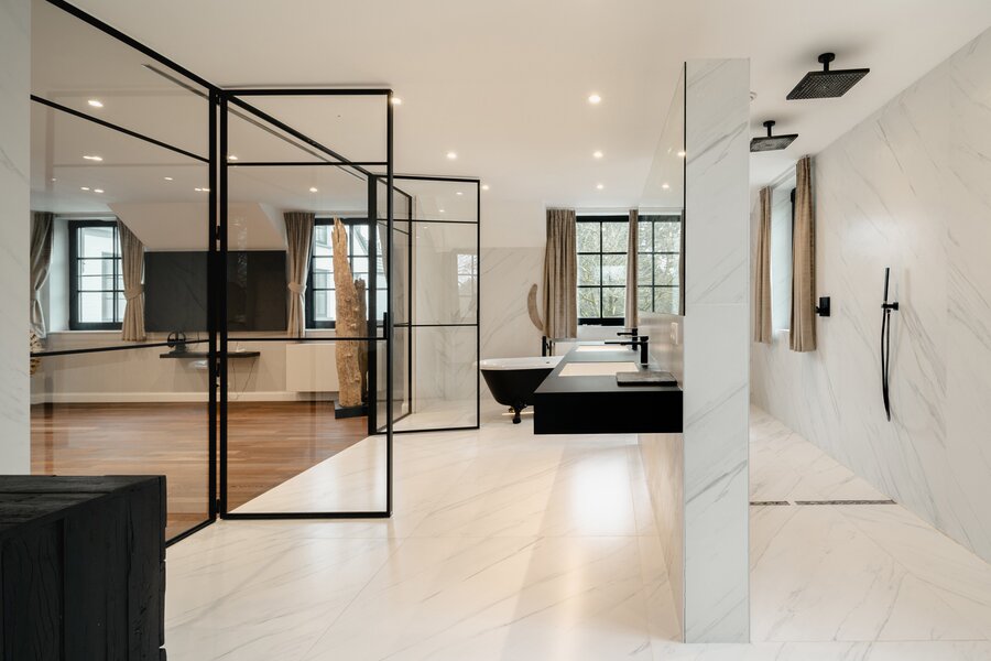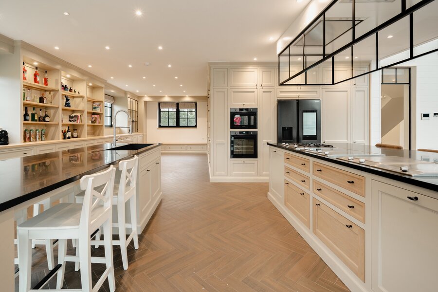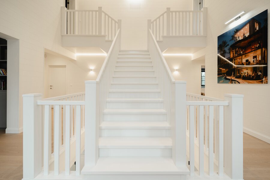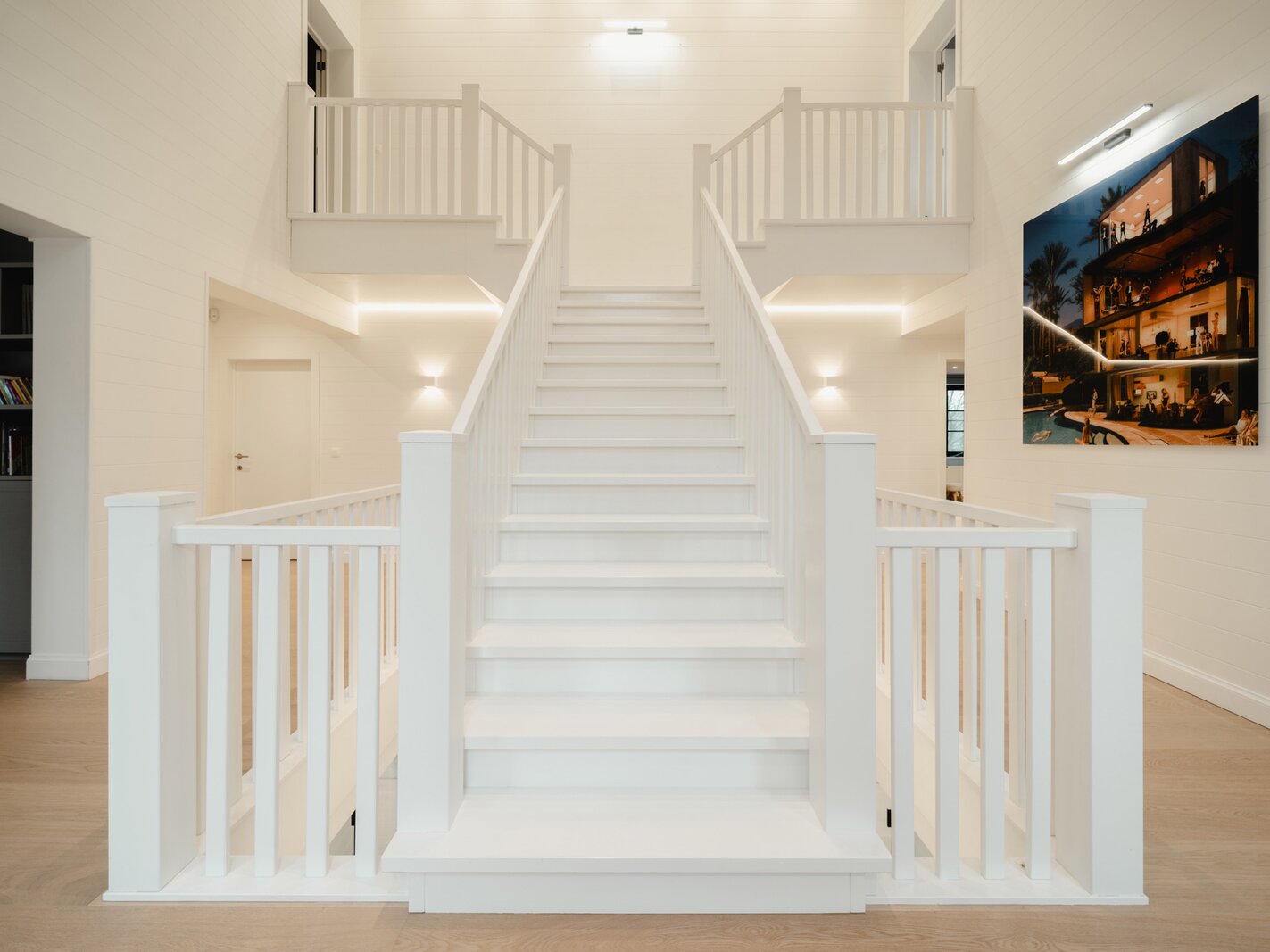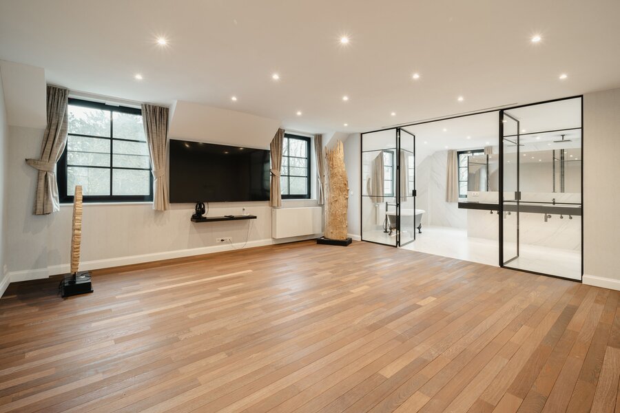 De eerste verdieping bestaat uit drie slaapkamers, elk met een dressing en een eigen douchekamer, evenals een master suite met een aparte dressing en een aangrenzende badkamer met een dubbele douche.