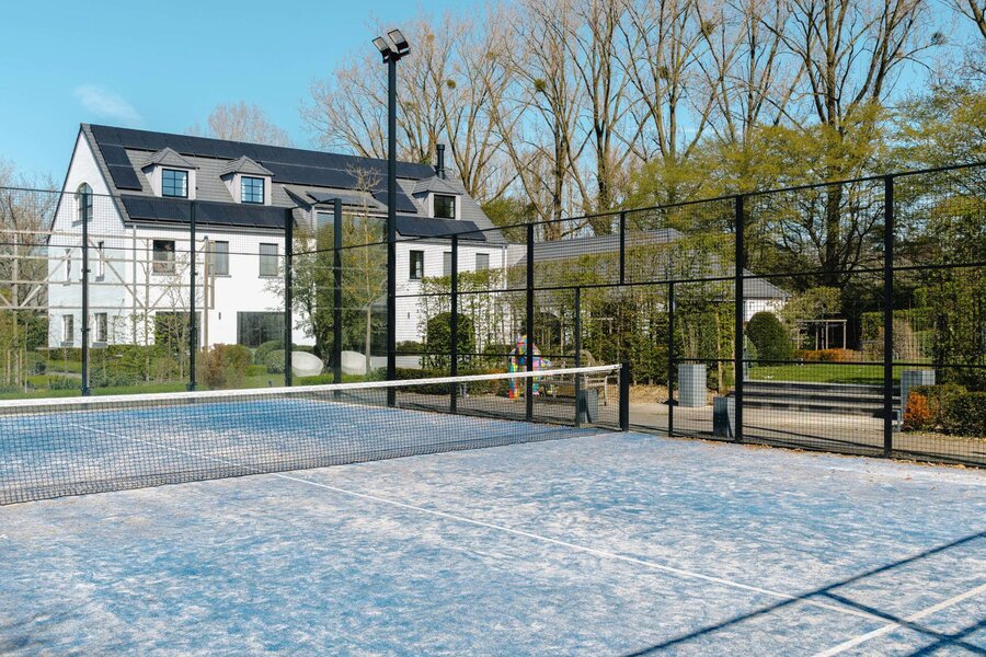 Buiten geniet de woning van een groot zwembad, een padelveld en een tweede pétanqueterrein.