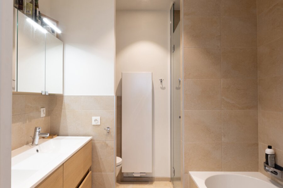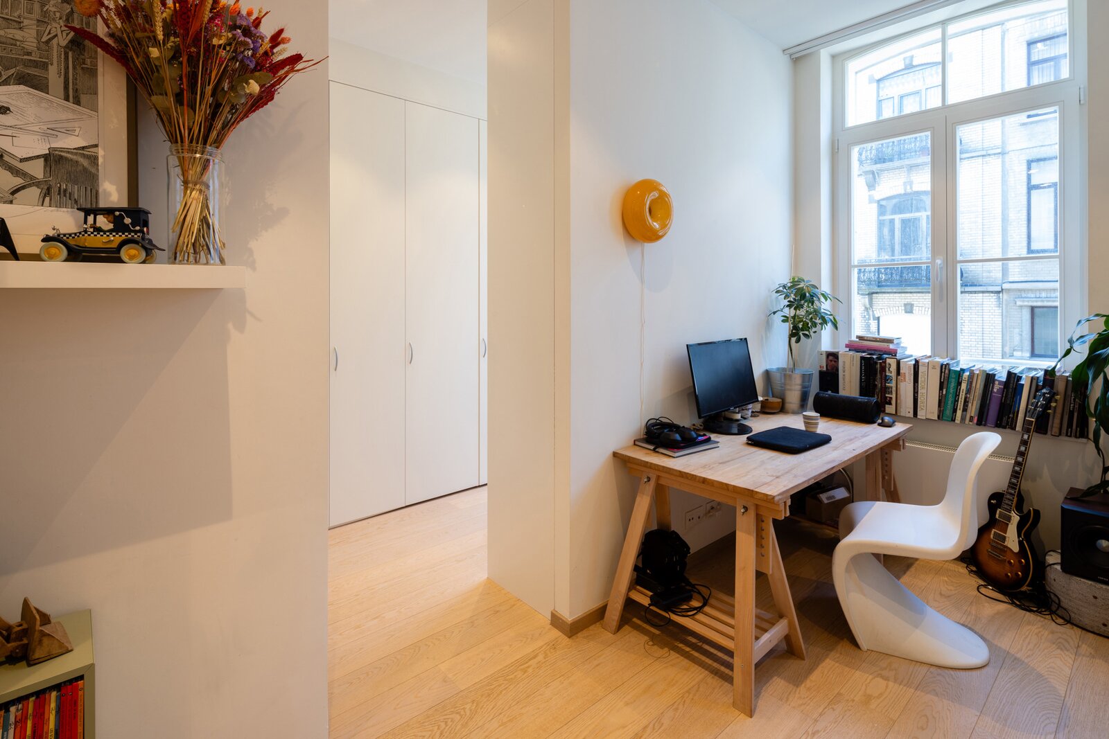 Tussen de Place Brugmann en het Quartier du Châtelain, in een klein karakteristiek gebouw uit 1926 en volledig gerenoveerd in 2019, zeer aantrekkelijk appartement op de 1e verdieping bestaande uit een mooie woonkamer met een zit- en eethoek en een volledig uitgeruste open keuken. Voor het nachtgedeelte, drie slaapkamers en drie badkamers met douche.