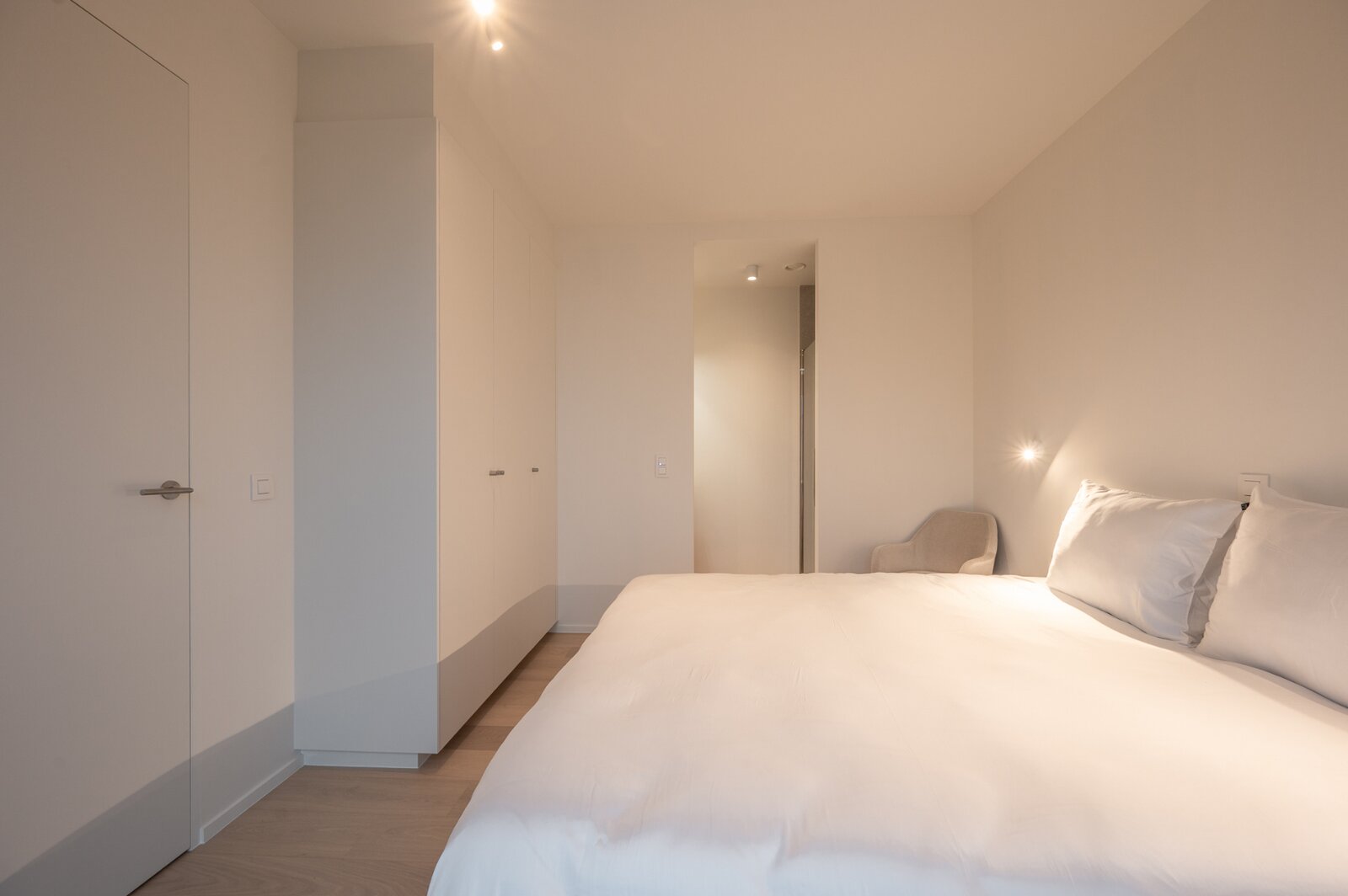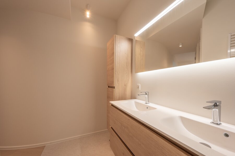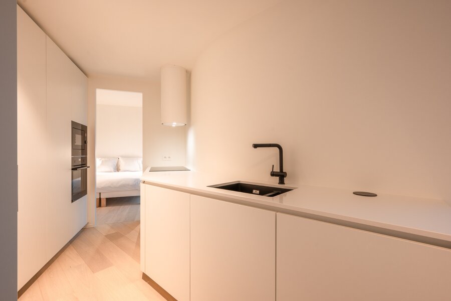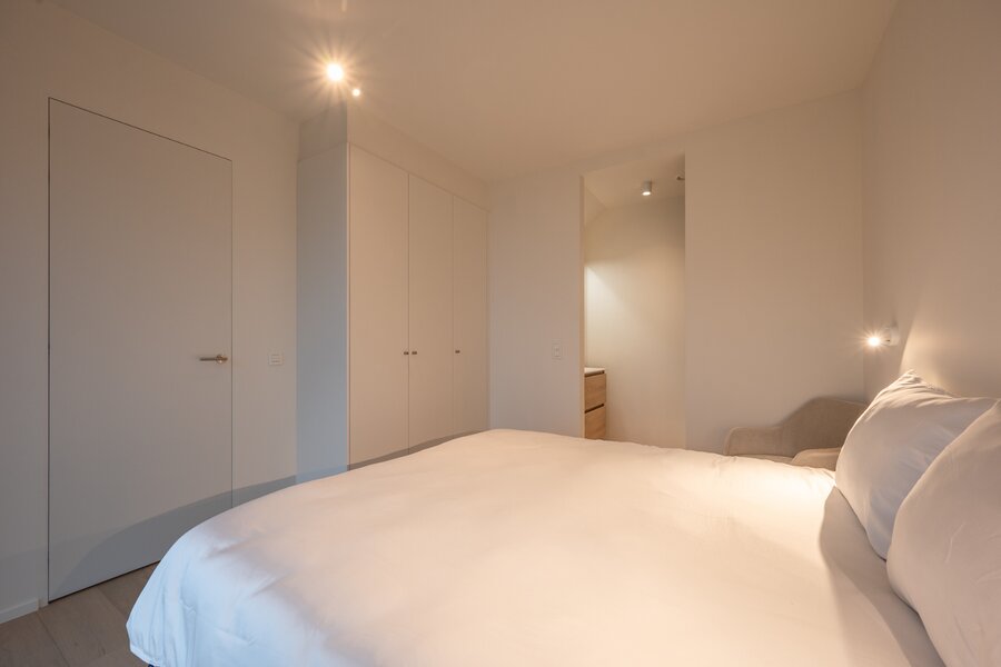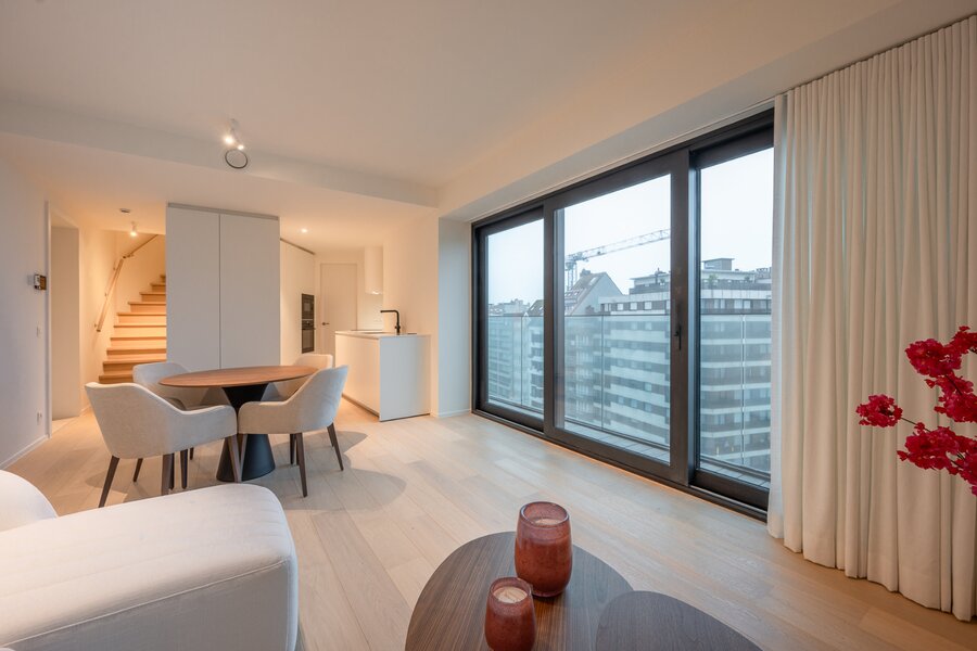 Het appartement wordt afgewerkt met hoogwaardige materialen, zoals parketvloeren, strak stucwerk en moderne verlichting..