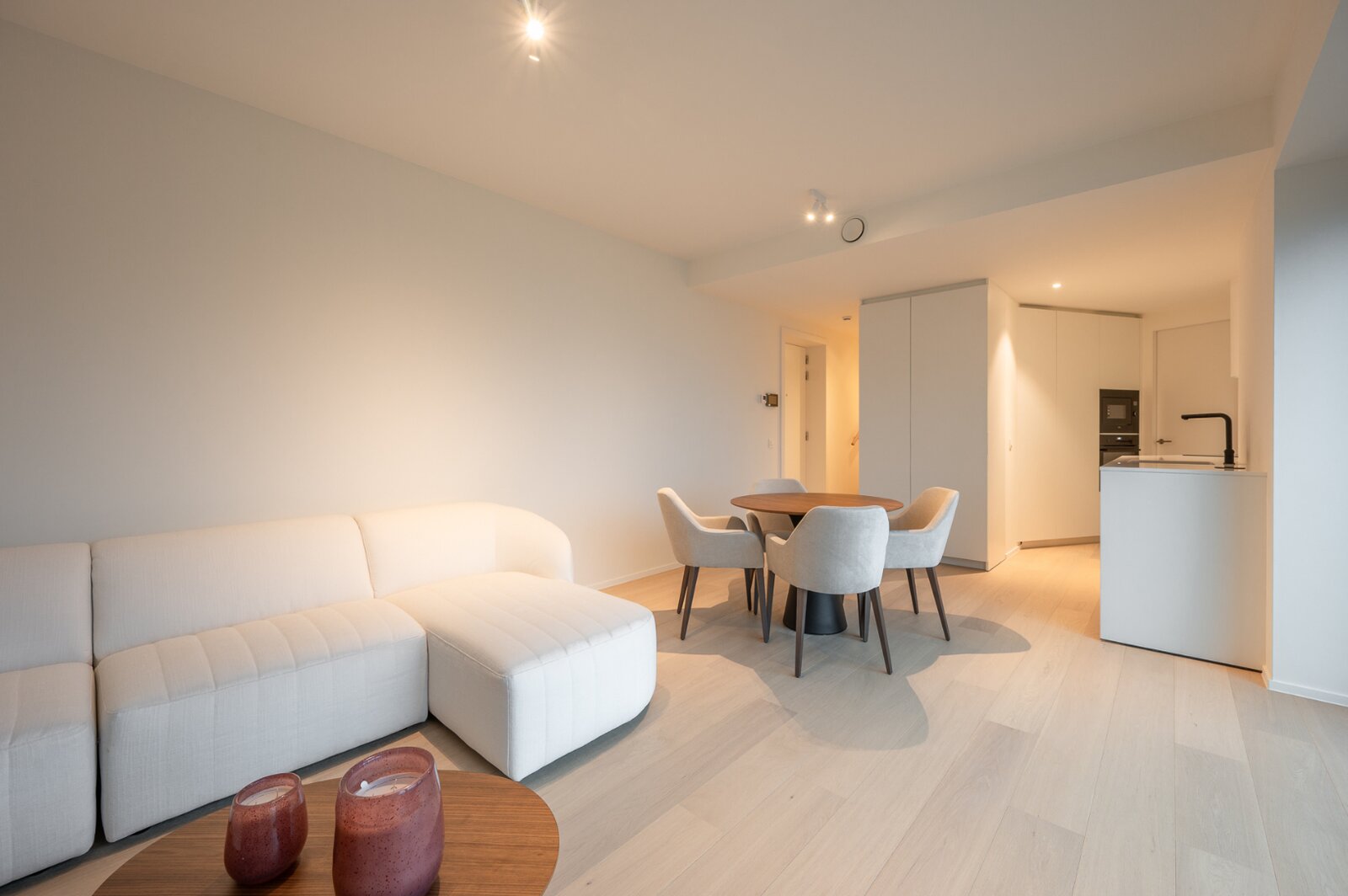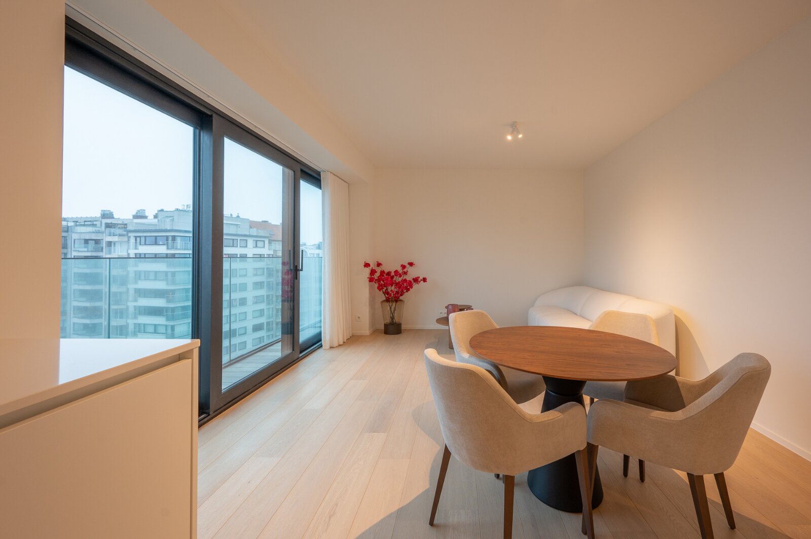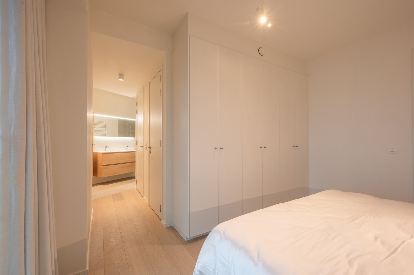 Het appartement wordt afgewerkt met hoogwaardige materialen, zoals parketvloeren, strak stucwerk en moderne verlichting..