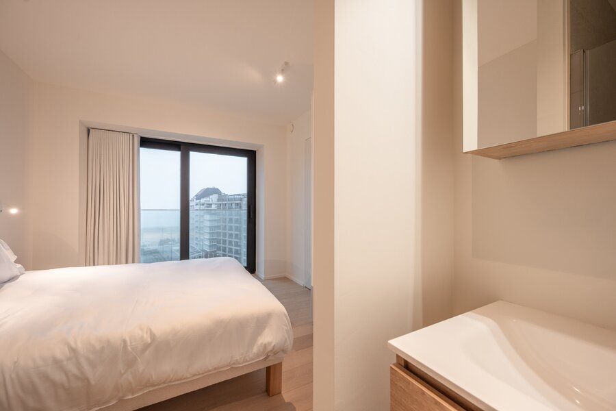 Een appartement op de zesde verdieping in de nieuwe Heldentoren met uitzicht op zee biedt een luxe en moderne woonervaring.