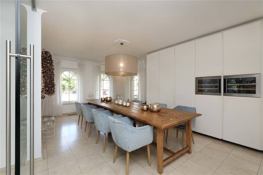 + Lichtrijke en gezellige leefruimte met openhaard met een riante eetkamer voorzien van knappe inbouwkasten met wijnkoelers en bar