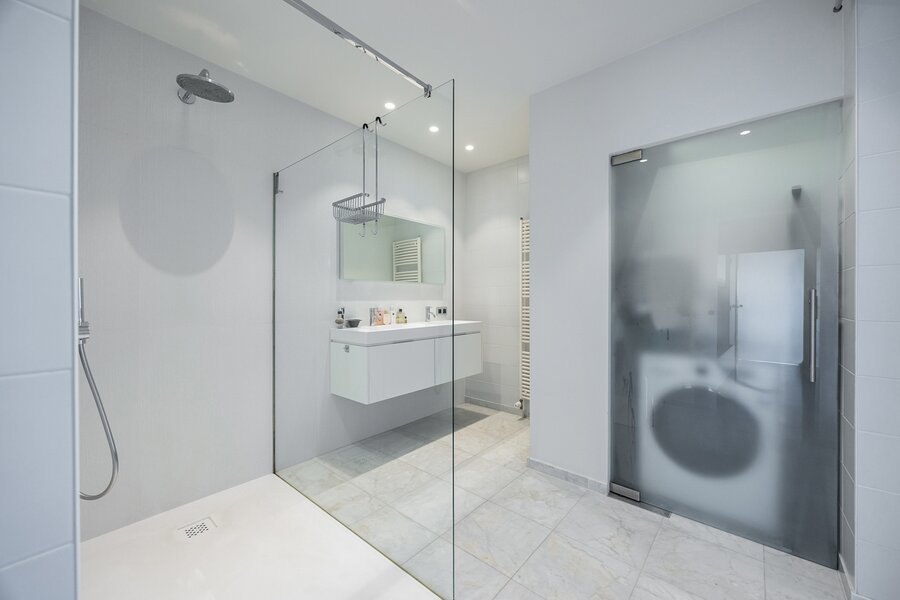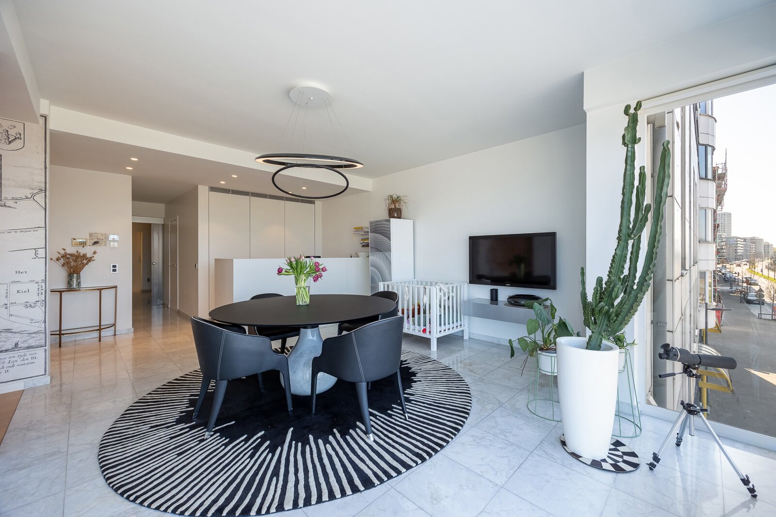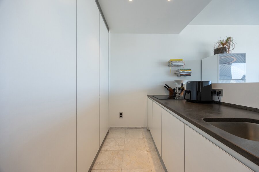 Verder beschikt het appartement over een masterslaapkamer met dressing én aanpalende badkamer. Een tweede slaapkamer is voorzien van ingemaakt kastenwerk.
