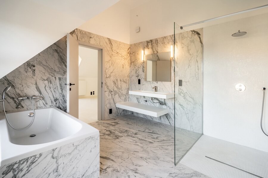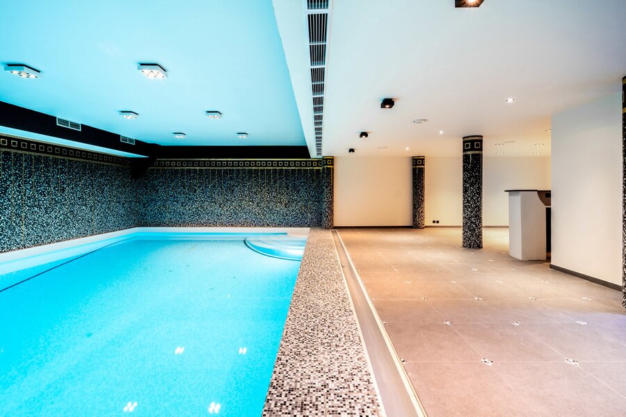 Andere kenmerken: grote volumes, marmer, schrijnwerk op maat, zwembad, hammam, sauna, lift, zonnepanelen, PEB C.