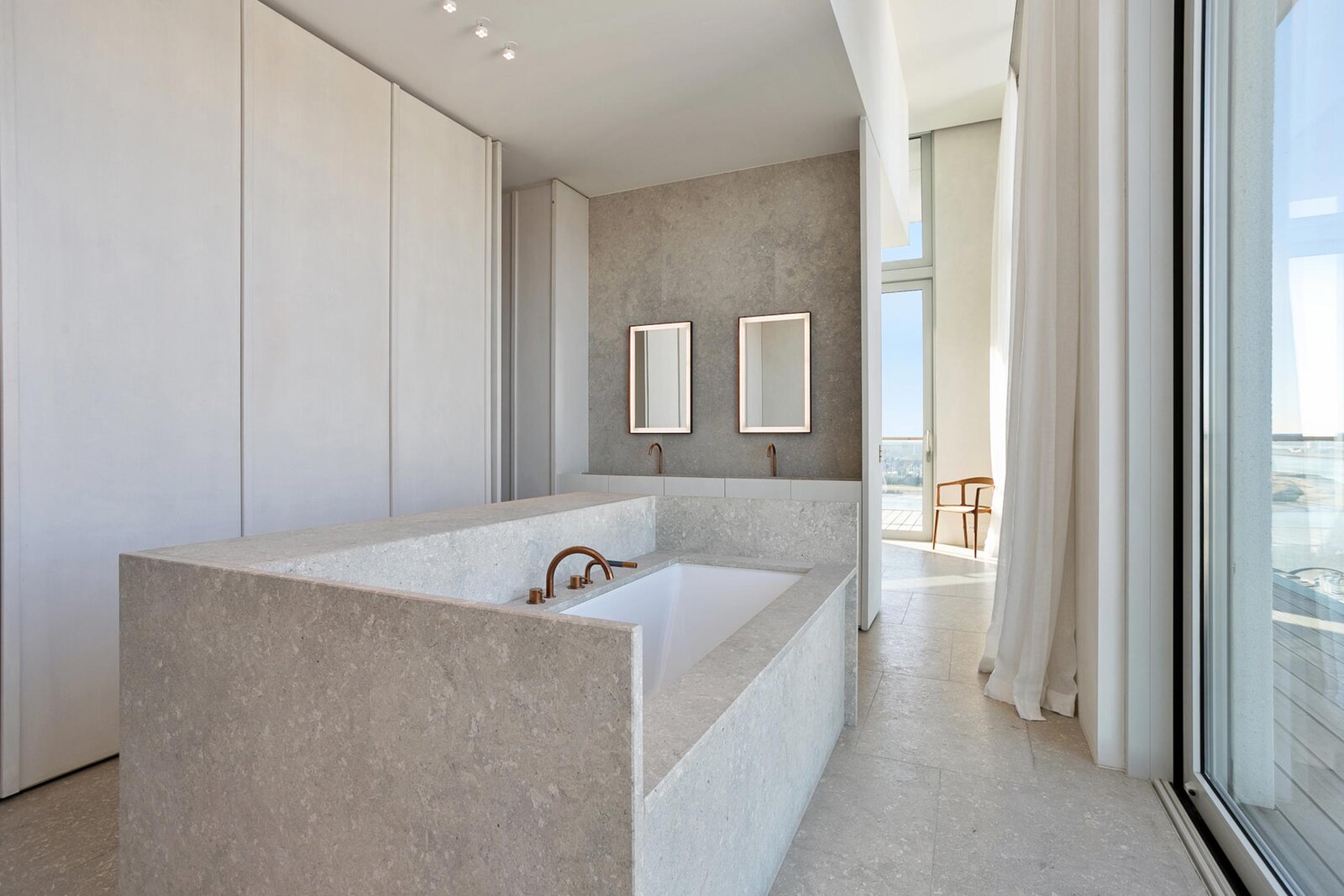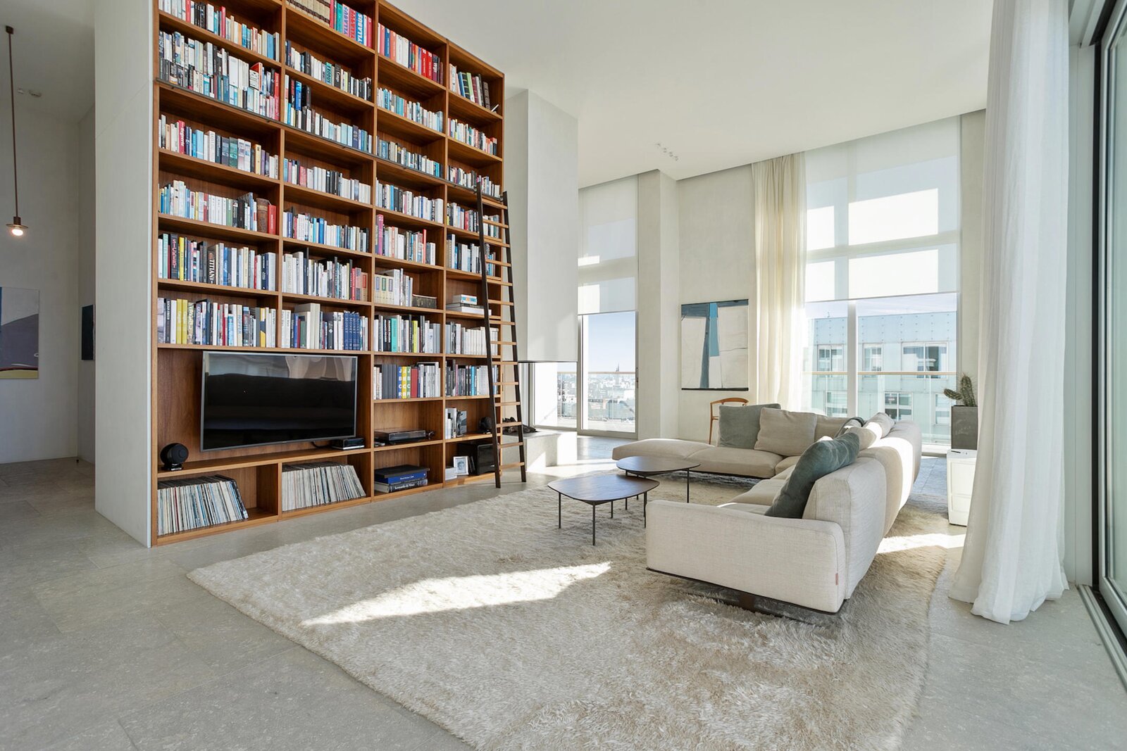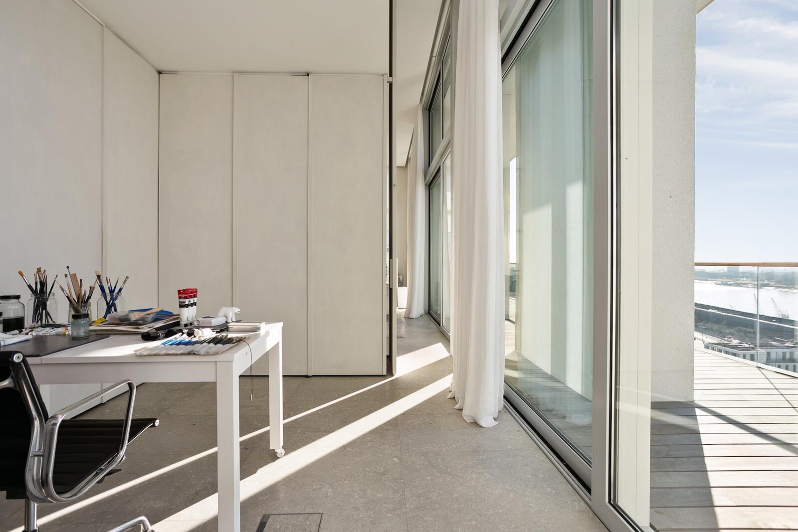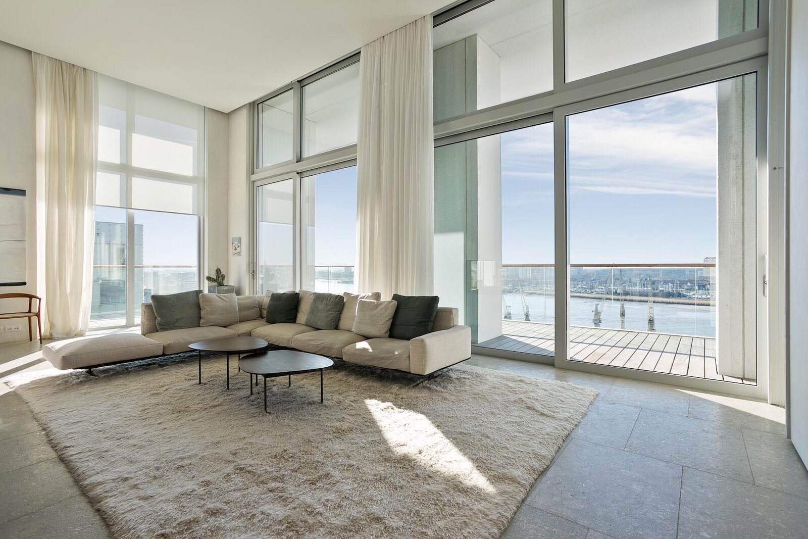 Minimalistisch en tijdloos ingerichte penthouse van de hand van Hans Verstuyft Architecten gelegen in een door David Chipperfield ontworpen gebouw op het Antwerpse eilandje.