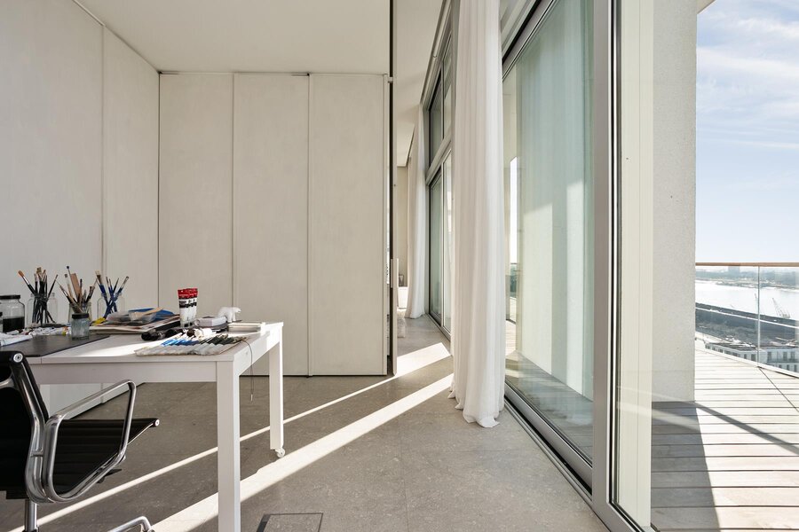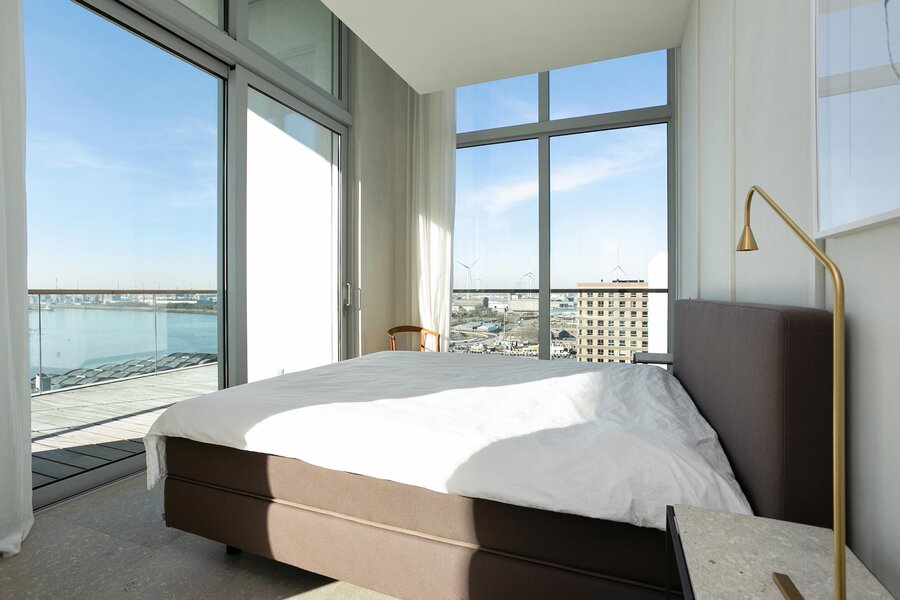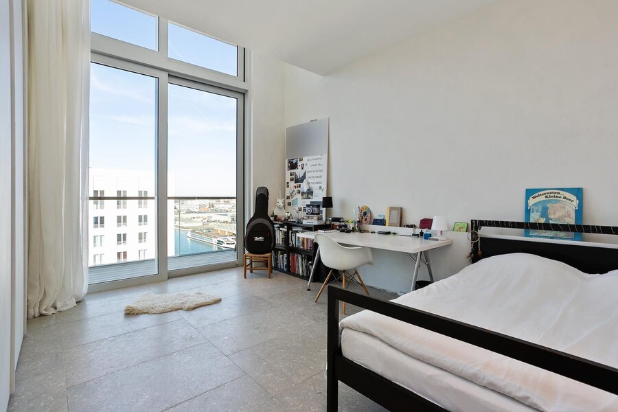 Het appartement heeft een plafond hoogte van 4,8m en is voorzien van een weids uitzicht en veel natuurlijk licht.