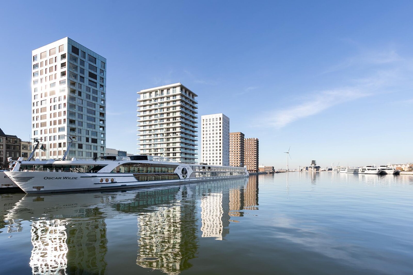 De leefruimte is zuidwest georiënteerd en heeft een panoramisch zicht over de schelde, de oude stad en het Willemdok.