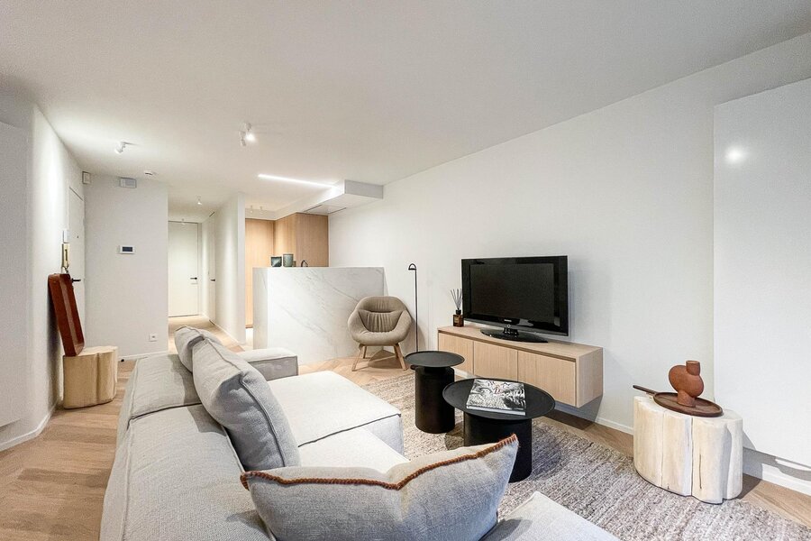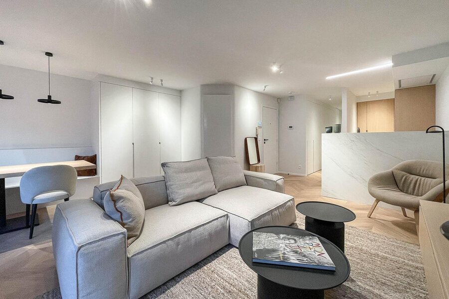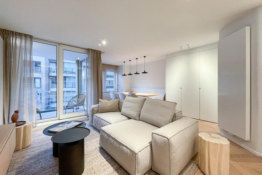 Volledig gerenoveerd appartement met twee ruime slaapkamers, VOLLEDIG gemeubileerd, centraal gelegen in een kleinschalige residentie.