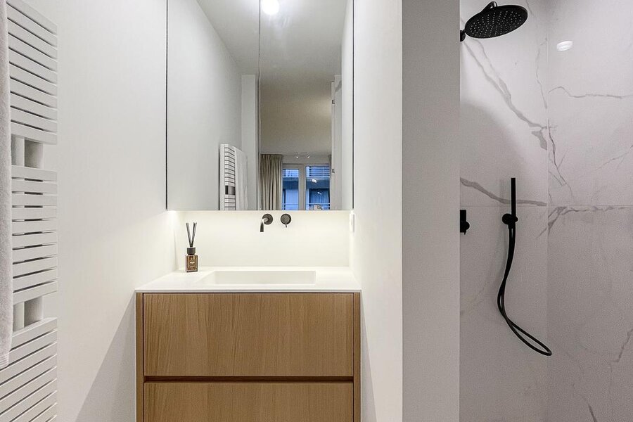 Het appartement is prachtig afgewerkt met hoogwaardige materialen!