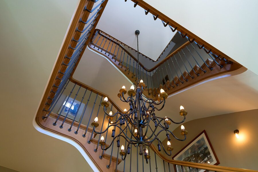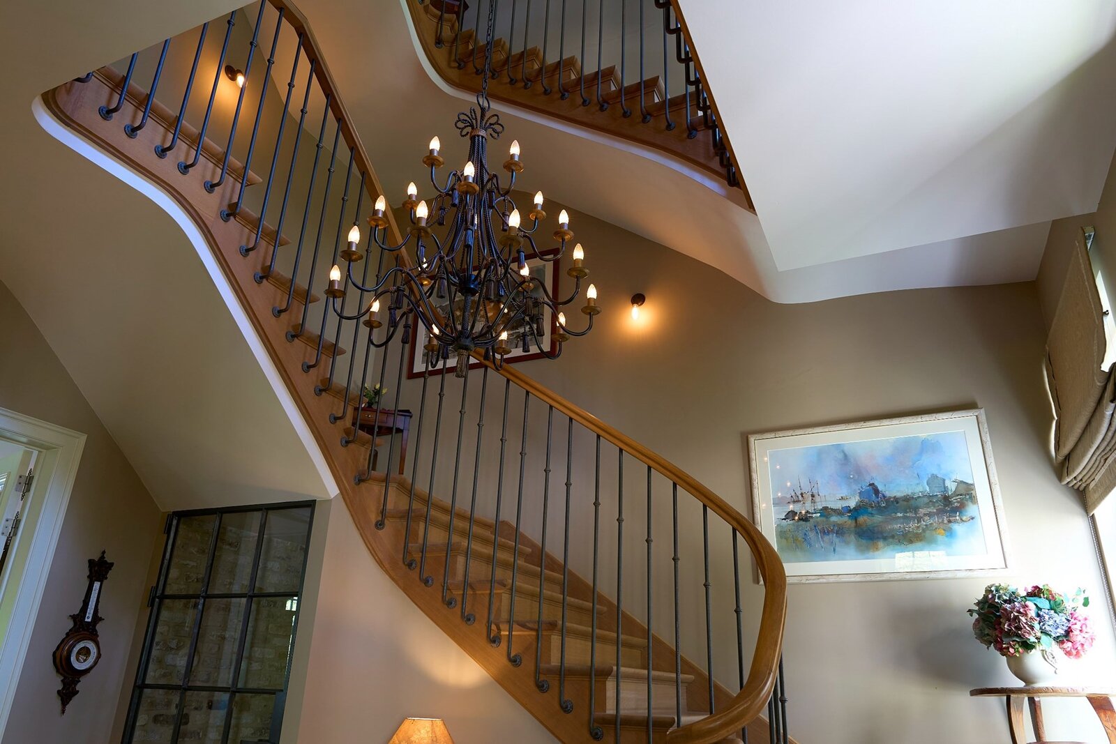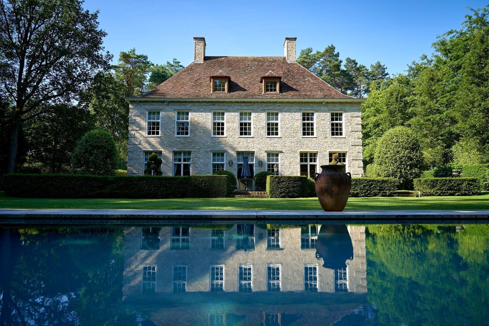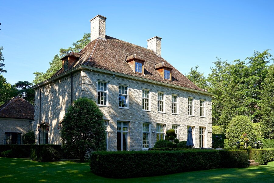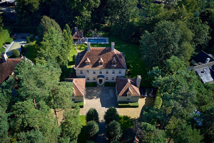 Indeling gelijkvloers: mooie entree met majestueus trappenhuis, stopplaats van de lift, gastentoilet en vestiaireruimte, ruime living met extra brede plankenvloer en opslaande deuren naar de tuin, in de open haard met antieke mantel pronkt een houtkachel, toegang naar de “herenkamer/muziekkamer” eveneens voorzien van open haard (gashaard), oa voorzien van bar met tv ruimte, vast trap naar een ruim huisbureau.