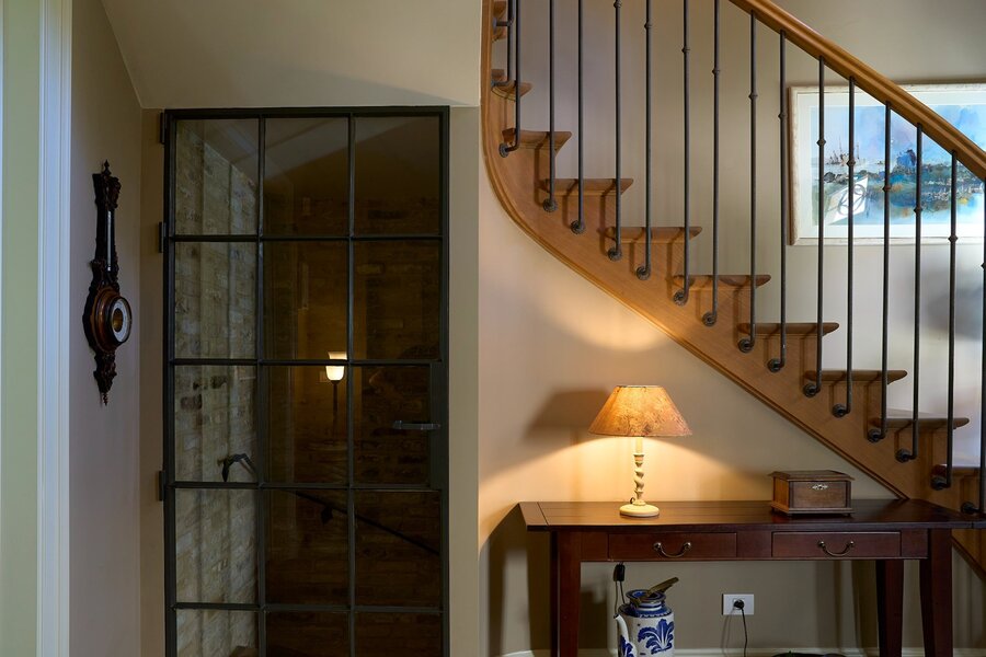 Vanuit de hall is er tevens toegang naar de kelderverdieping via vaste trap of via de lift, deze heeft een technische ruimte, bergkelder en wijnkelder.