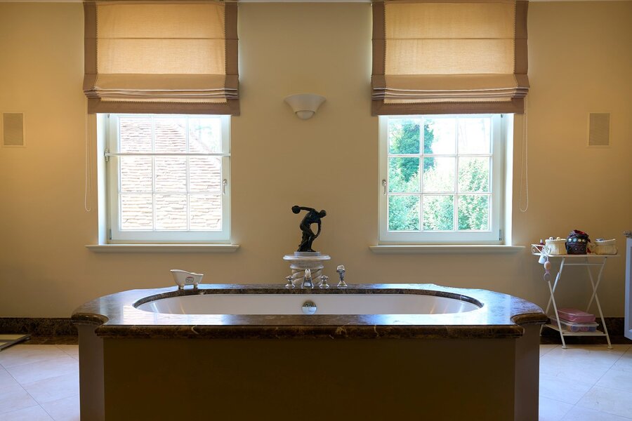 Indeling 1e verdieping: overloop welke afgesloten kan worden met een veiligheidsdeur, ruime ouderslaapkamer met dressing en luxe badkamer met Emperador marmer, ligbad, twee wastafels, toilet en inloopdouche (voorzien van stoom), tweede en derde ruime slaapkamer met ingemaakte kasten welke een tweede badkamer met aparte douche delen, wasplaats.