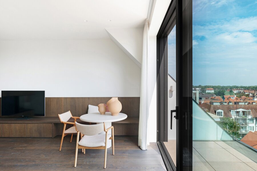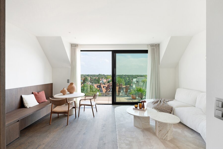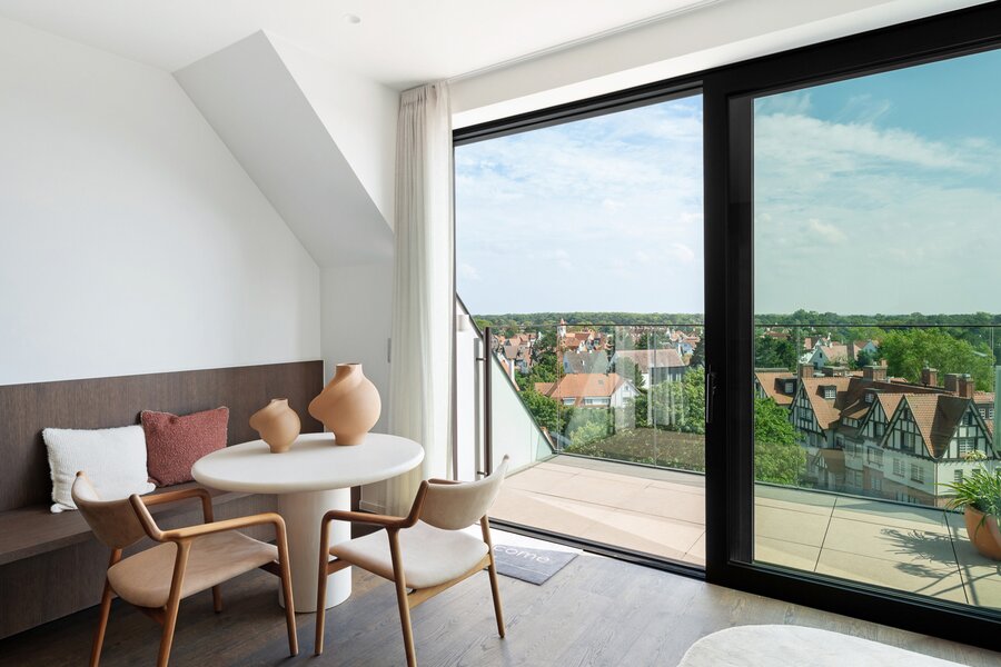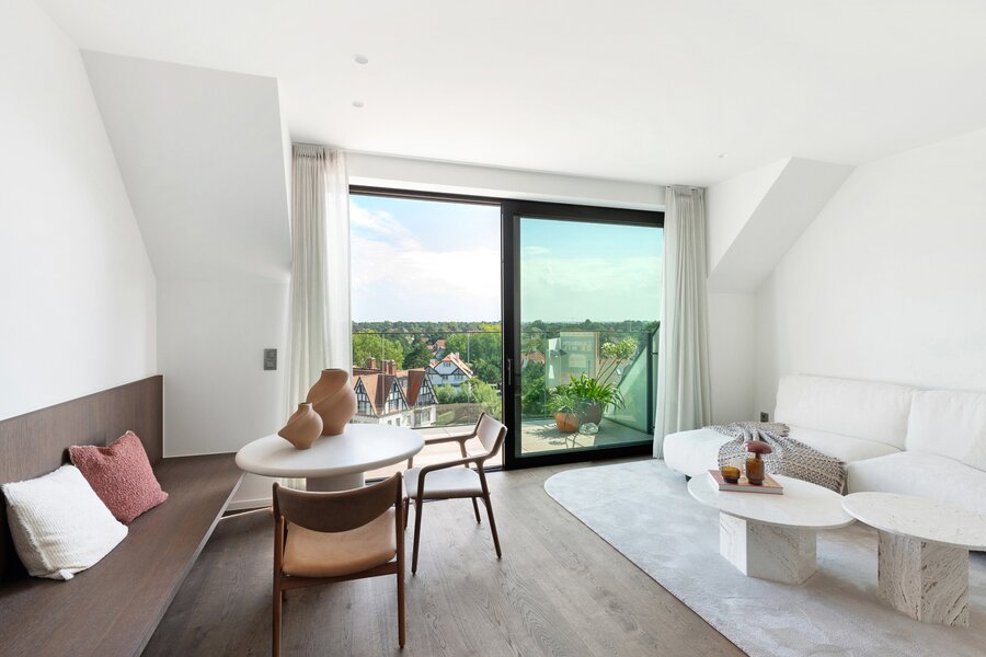 Nieuw, luxueus afgewerkte duplex penthouse gelegen hartje Zoute in de Kustlaan ter hoogte van E. Ysayelaan vlakbij het Albertplein, in een nieuwe residentie