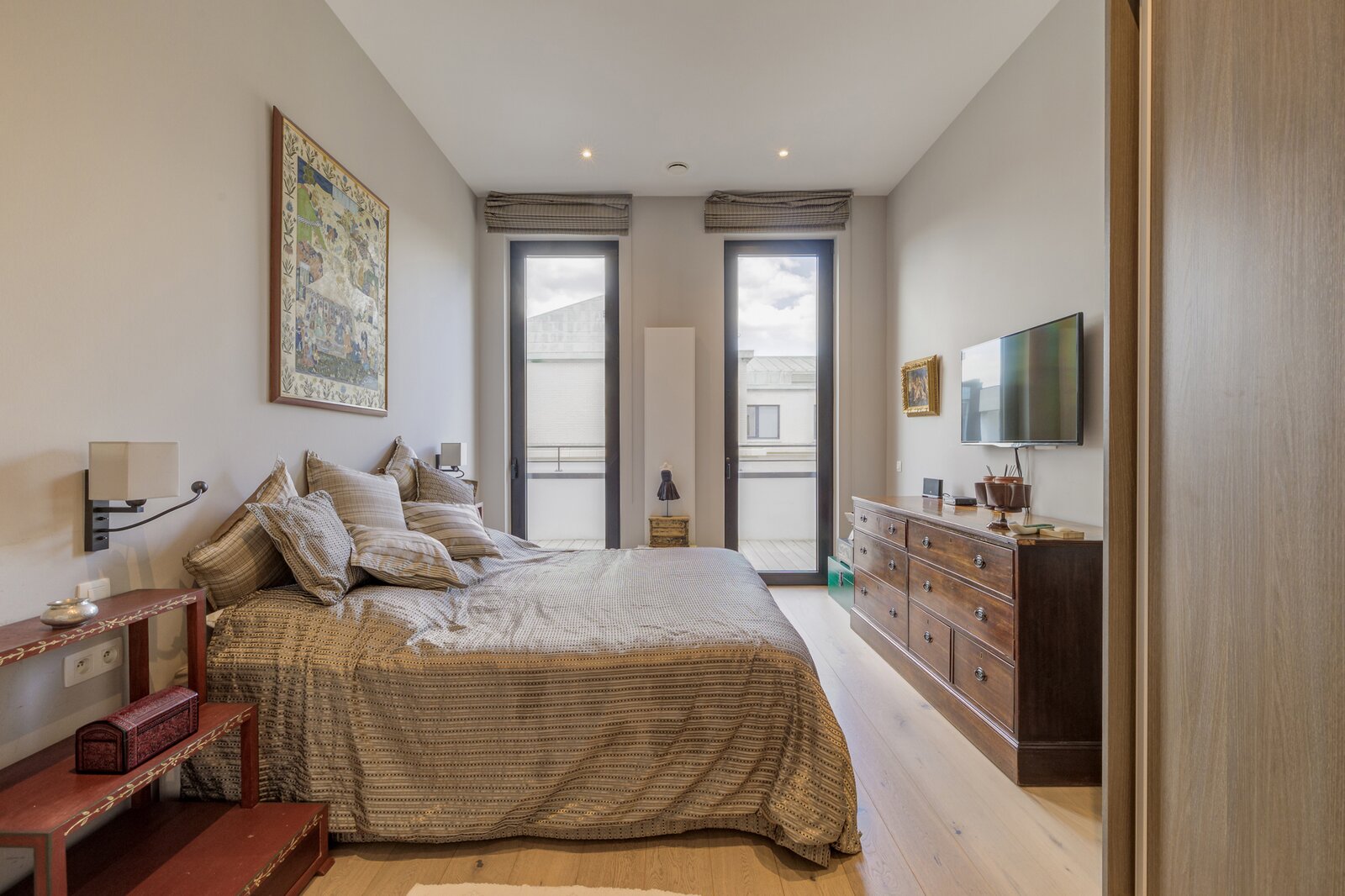 Het slaapgedeelte bestaat uit een master suite met aangrenzende badkamer, twee extra slaapkamers, een doucheruimte en veel ingebouwde kasten.