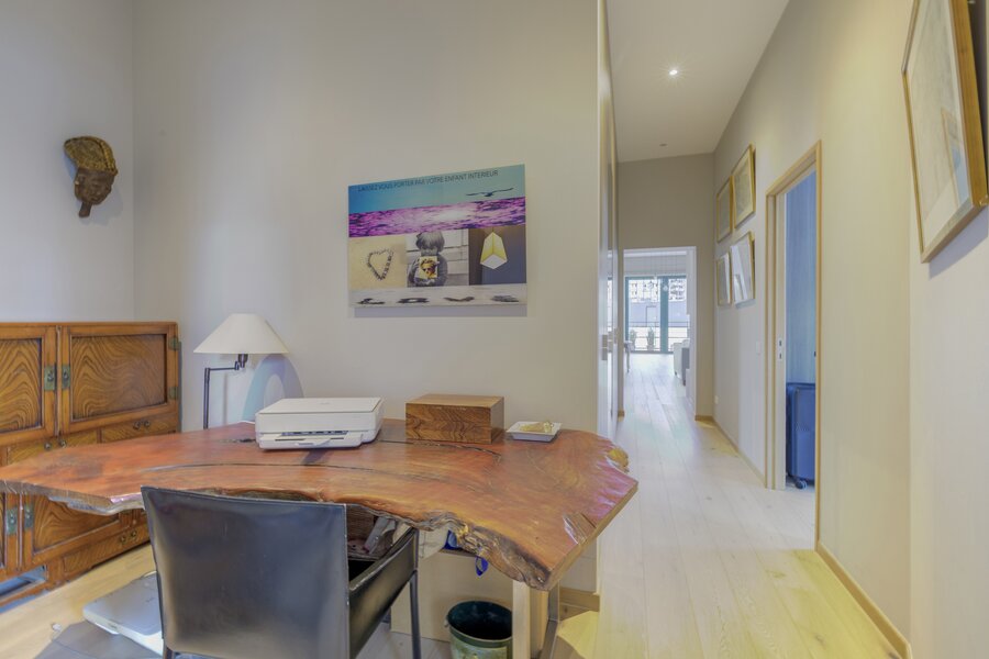 In de prestigieuze wijk Sablon, op een steenworp afstand van de Grote Markt, ligt dit prachtige appartement van ± 210 m² op de 5e verdieping van een iconisch gebouw – de voormalige gebouwen van de CGER – dat in 2015 volledig is gerenoveerd.