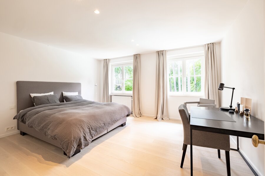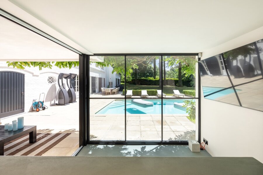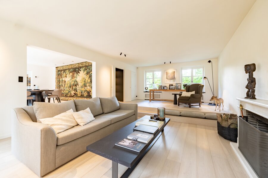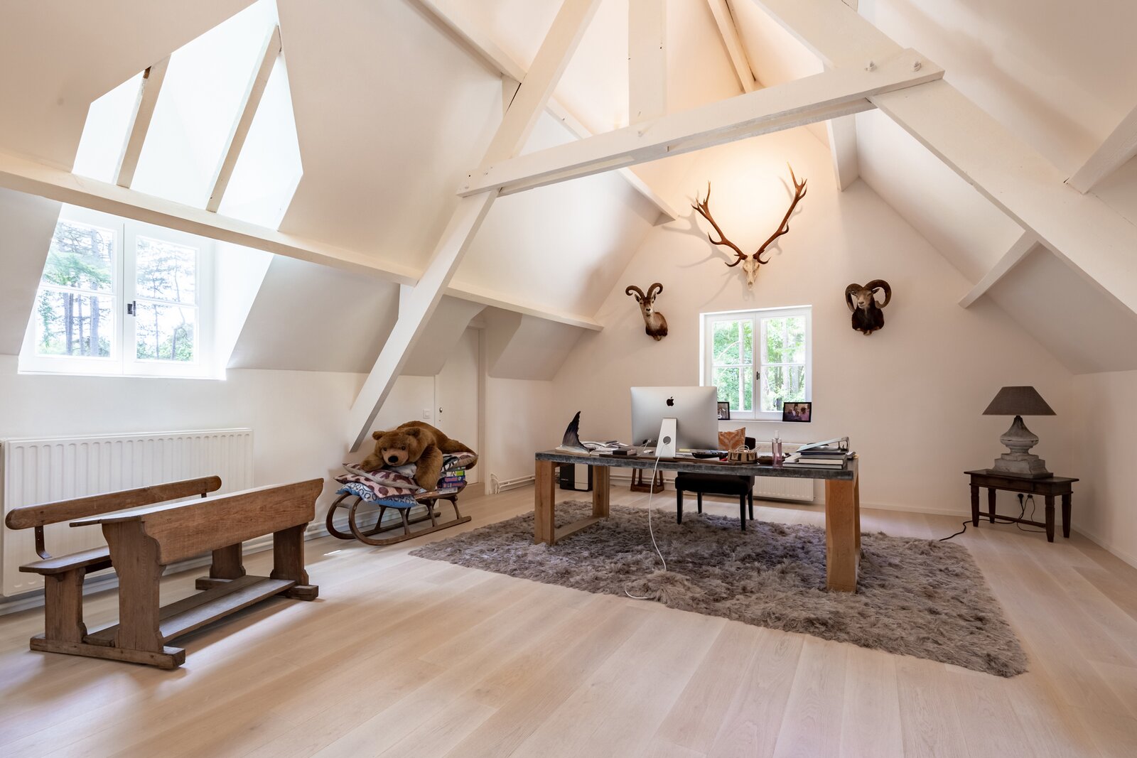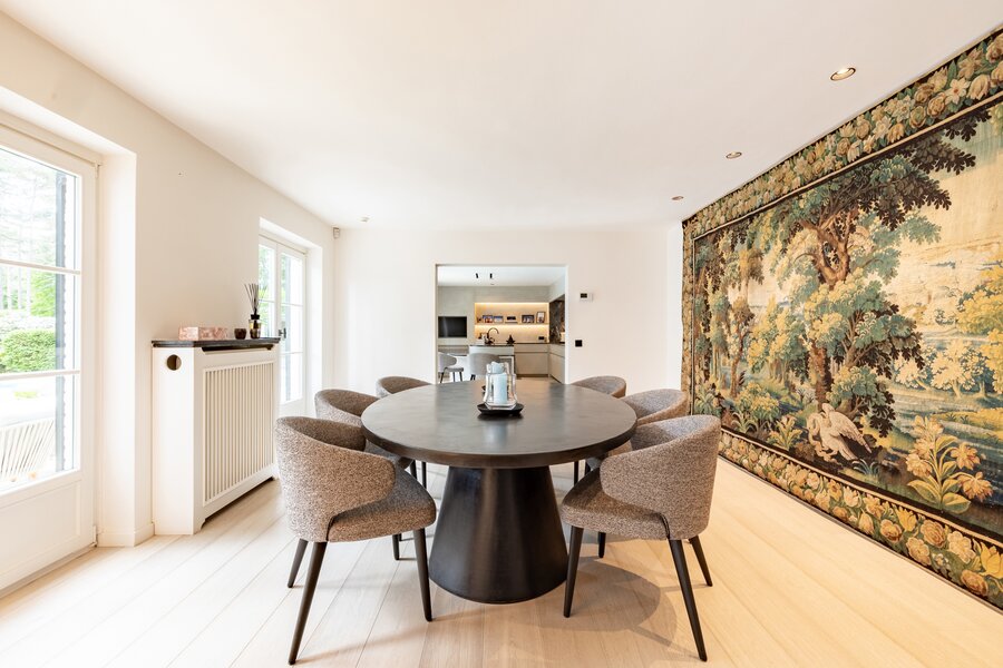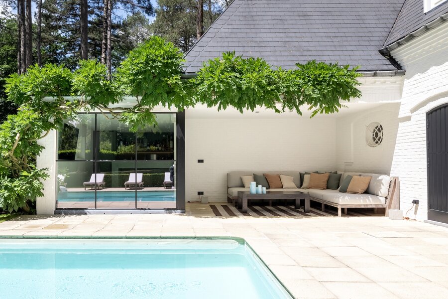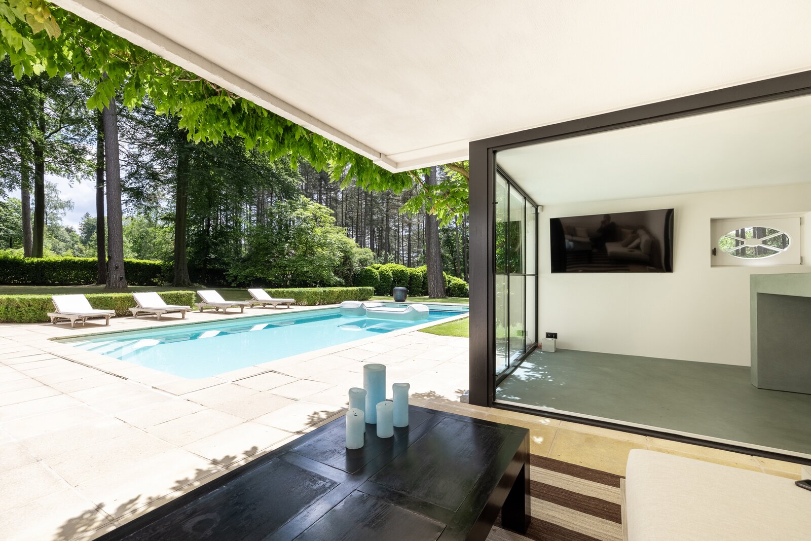 Buiten breidt een prachtig zwembad met poolhouse en buitenbar de leefruimtes uit in een zomerse sfeer. Een grote zolder van ongeveer 100 m², die gemakkelijk kan worden verbouwd, en een conciërgewoning met aparte ingang maken het geheel compleet.