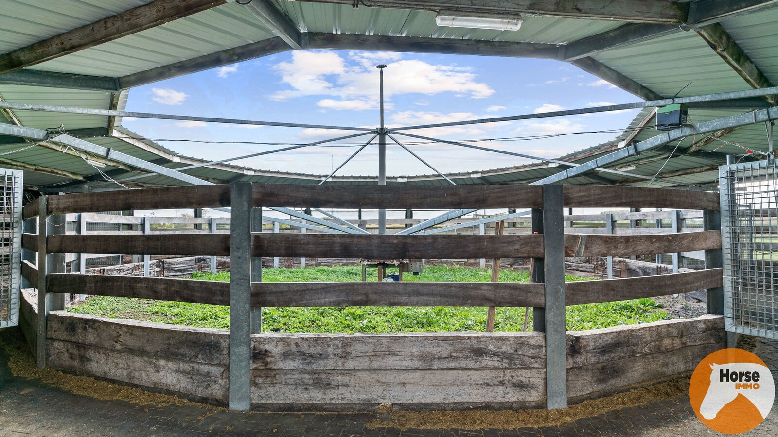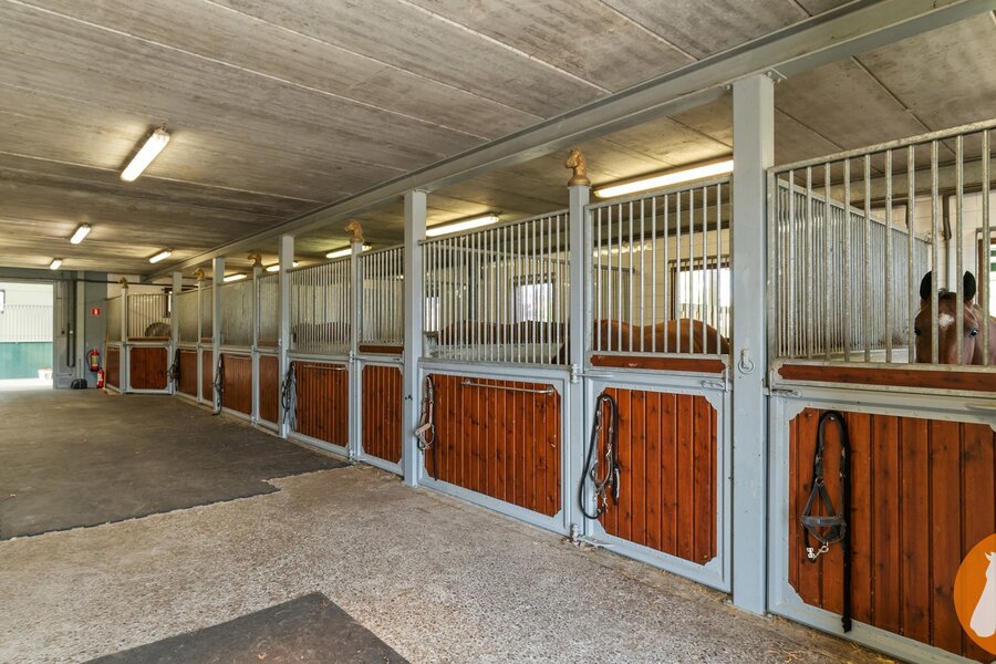 MECHELEN - De eigendom omvat een hippische accommodatie met binnen en buitenpiste, stallen, poetsplaatsen, groomswoning, opslagplaats, villa en bouwgronden.