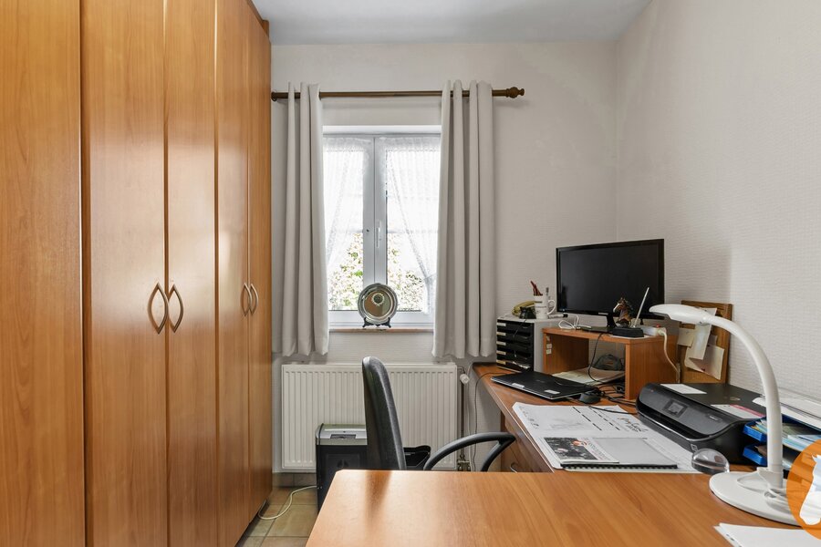 De villa (mogelijks kangoeroewoning) beschikt op het gelijkvloers over een inkomhal, bureau, keuken, wasplaats, woonkamer, eetplaats, veranda, slaapkamer, badkamer en een dubbele inpandige garage.
