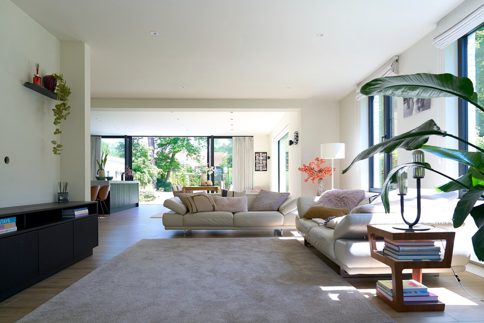 Bij binnenkomst word je verwelkomd in een stijlvolle entree met vestiaire en gastentoilet. De royale leefruimte straalt licht en rust uit, met een slimme, speelse indeling waar wonen, eten en koken moeiteloos in elkaar overvloeien.