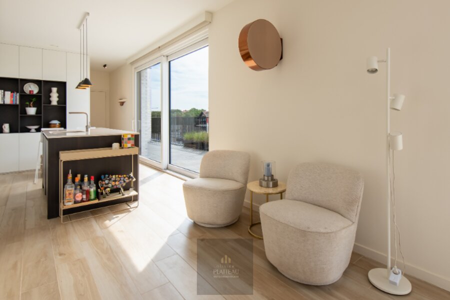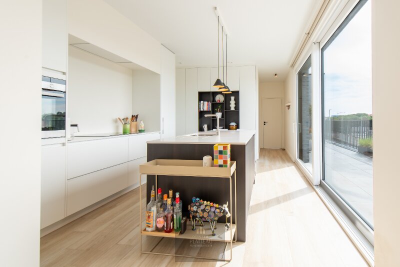 Deze penthouse biedt dankzij zijn slimme indeling en dubbele woonruimte ook mogelijkheden als kangoeroewoning of voor vrije beroepers die op zoek zijn naar een comfortabele combinatie van wonen en werken. Een grote ondergrondse garagebox met elektrische laadpaal is optioneel bij aan te kopen. De ligging is ideaal: vlakbij de gerenommeerde watersportclub KYC en op wandelafstand van de culinaire hotspots en boetieks van Sint-Idesbald. Een uitzonderlijke opportuniteit voor wie op zoek is naar ruimte, comfort, natuur en duurzaamheid op een toplocatie aan zee. EPC: -4 kWh/m². Nieuwe voorwaarden! Vraagprijs: 1135000€