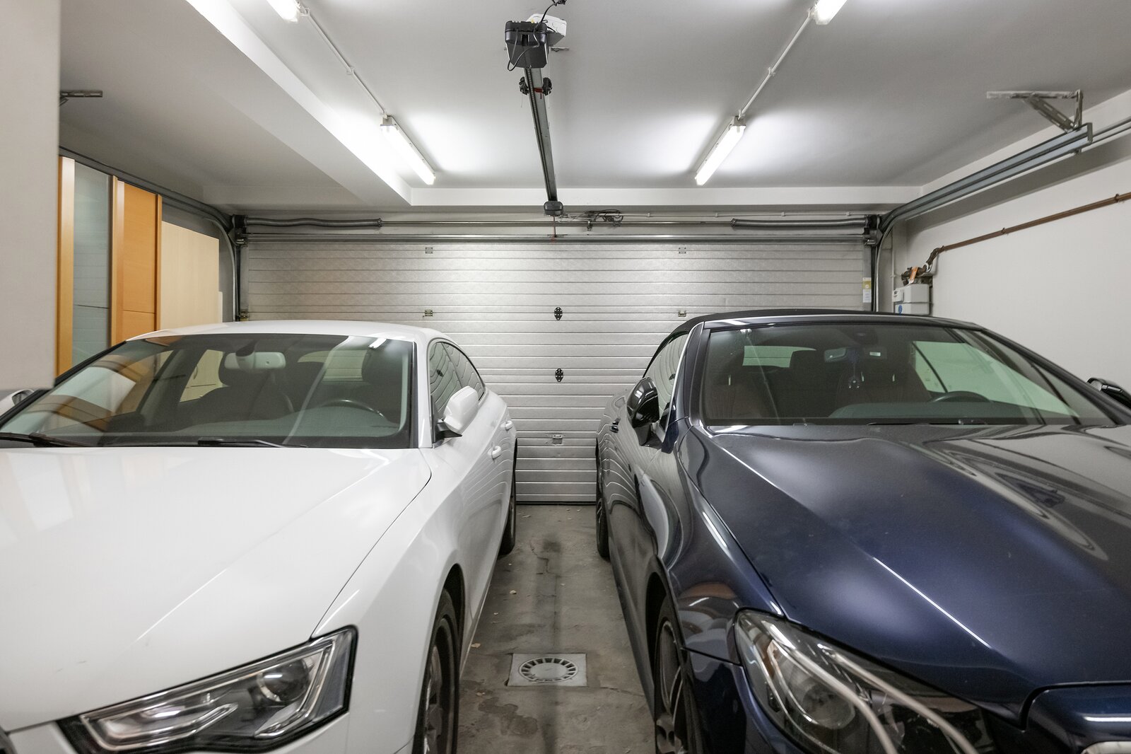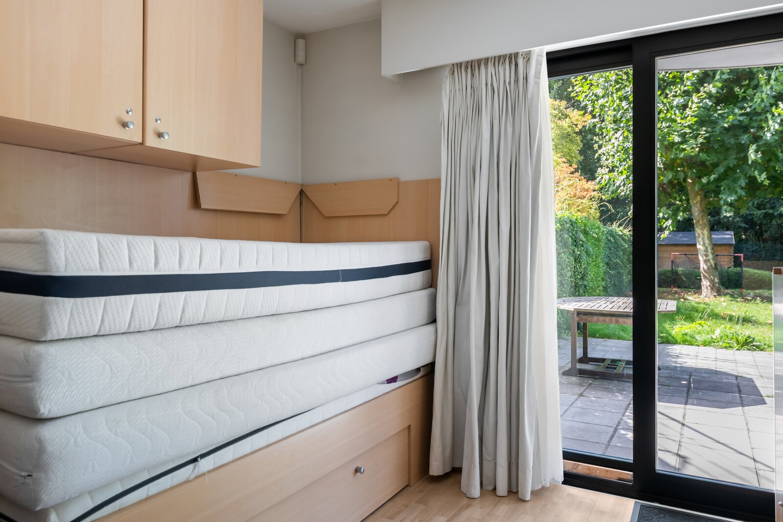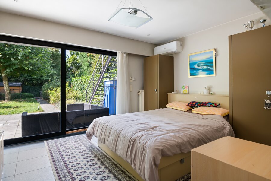 Op het gelijkvloers bevinden zich twee slaapkamers, waarvan één met een eigen badkamer voorzien van douche en lavabo. Verder is er een apart toilet en een ruime garage met plaats voor twee wagens. Op de oprit zijn bovendien nog twee extra autostaanplaatsen beschikbaar.