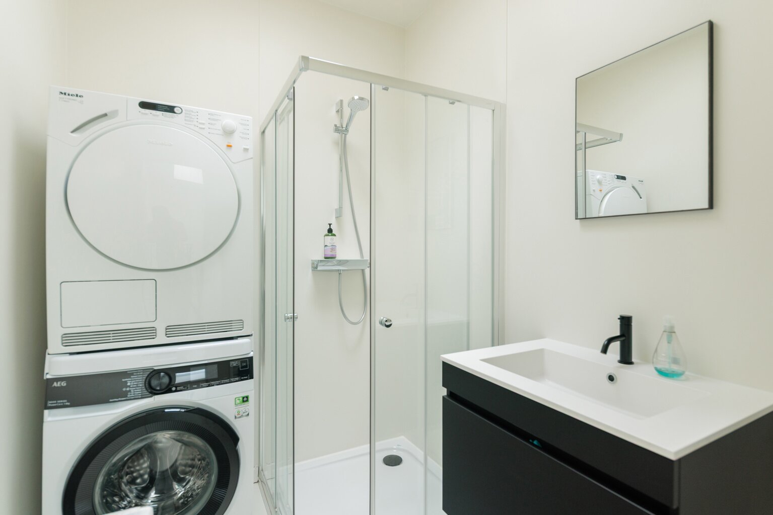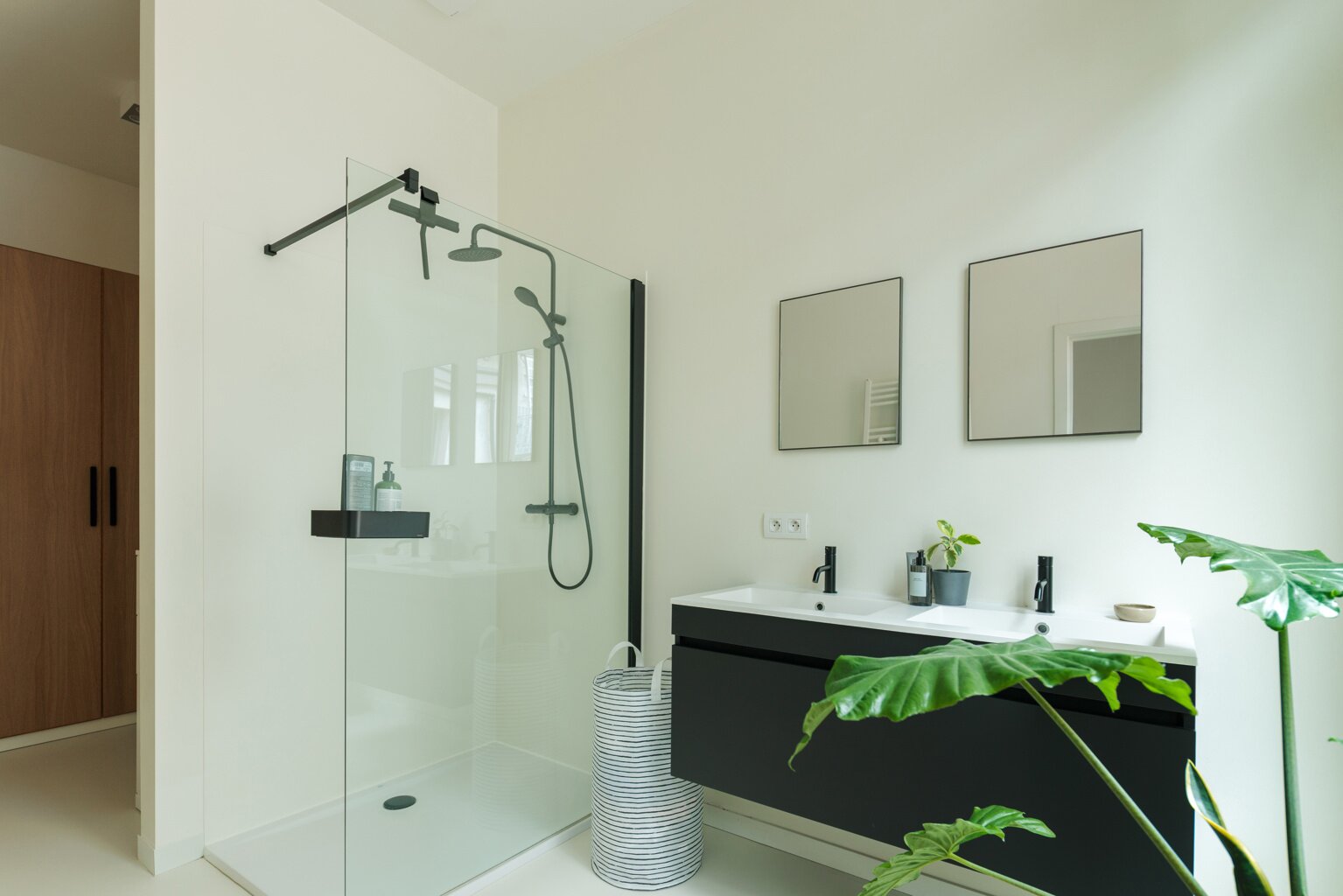 Op de bovenverdiepingen vind je drie slaapkamers en twee badkamers. Slim ingedeeld, modern afgewerkt en met genoeg ruimte voor gezin, logees of home office.