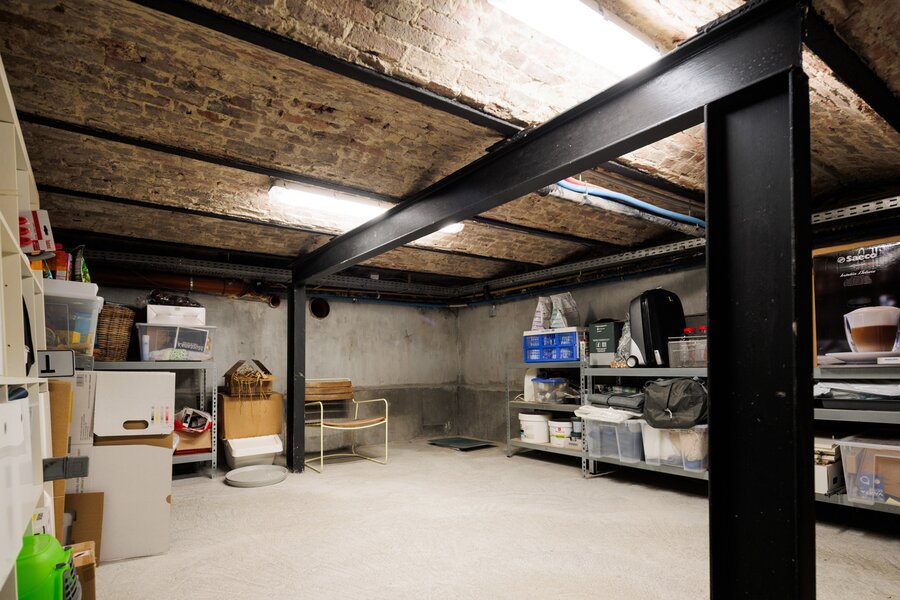 Extra troef: de giga kelder. Functioneel voor opslag, maar net zo goed een creatieve ruimte in wording.
