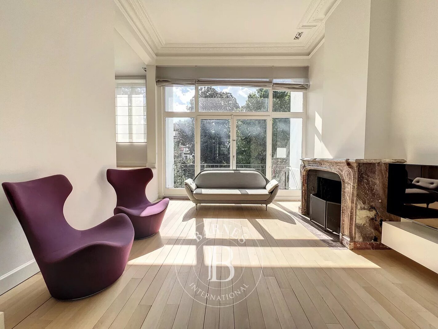 Op de 1e verdieping, mooie lichte ontvangstruimten met open haard, een bibliotheek, een volledig uitgeruste keuken die uitkomt op een eetkamer.