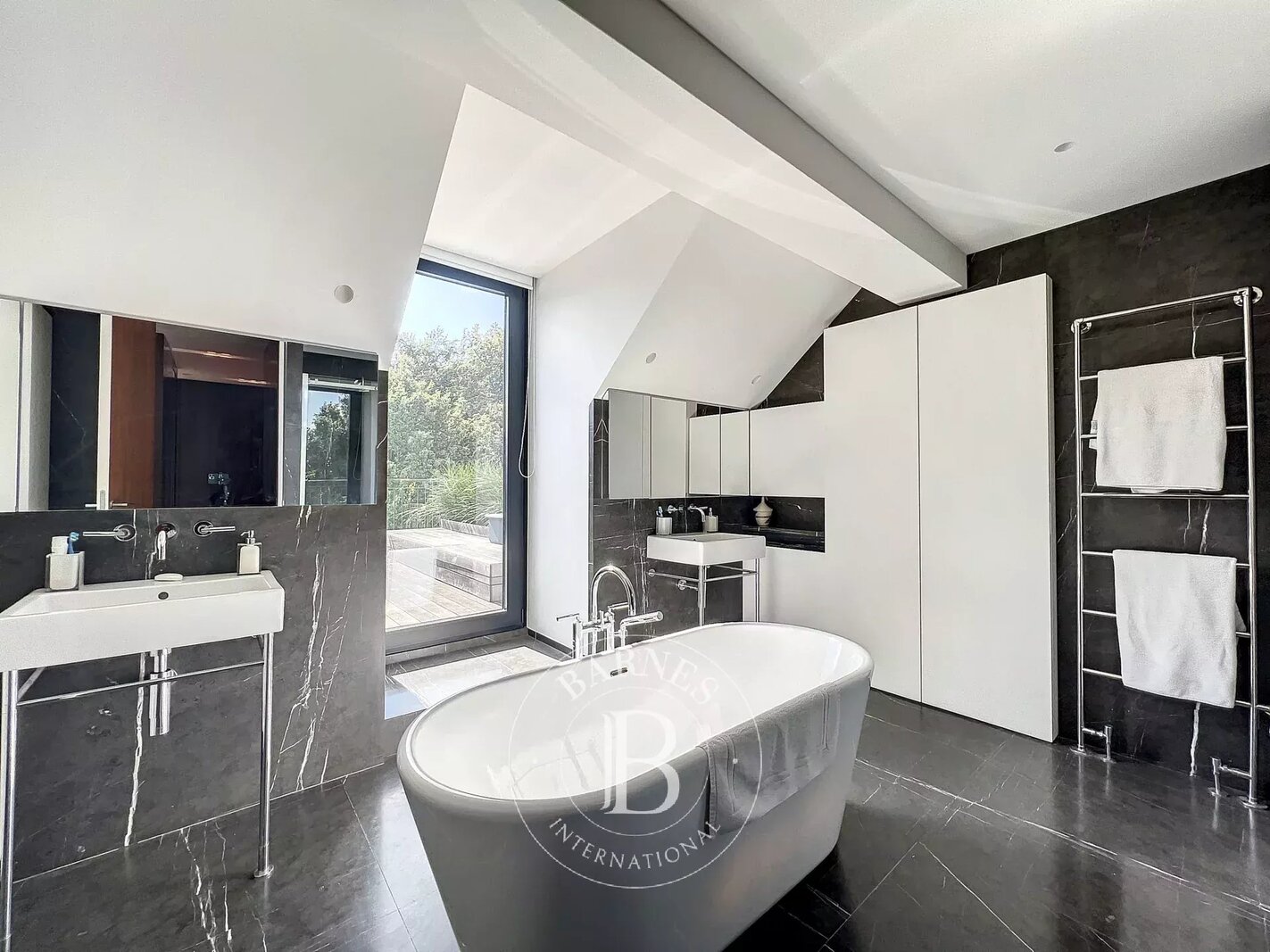 Op de 2e verdieping de hoofdslaapkamer met kleedkamer en en-suite badkamer, een groot terras op het zuiden, een tweede slaapkamer.