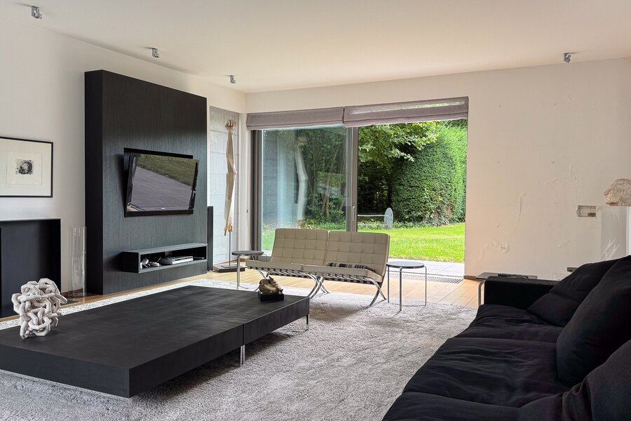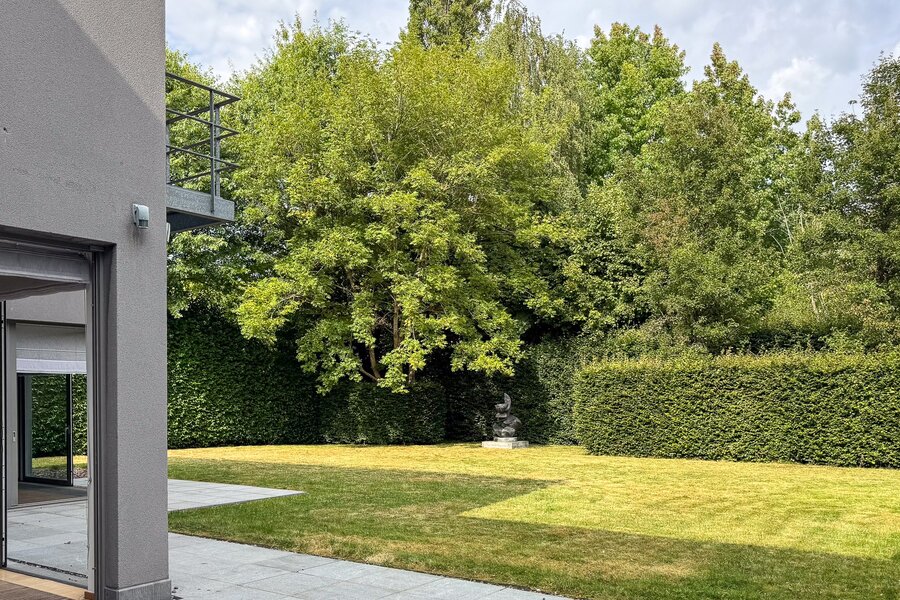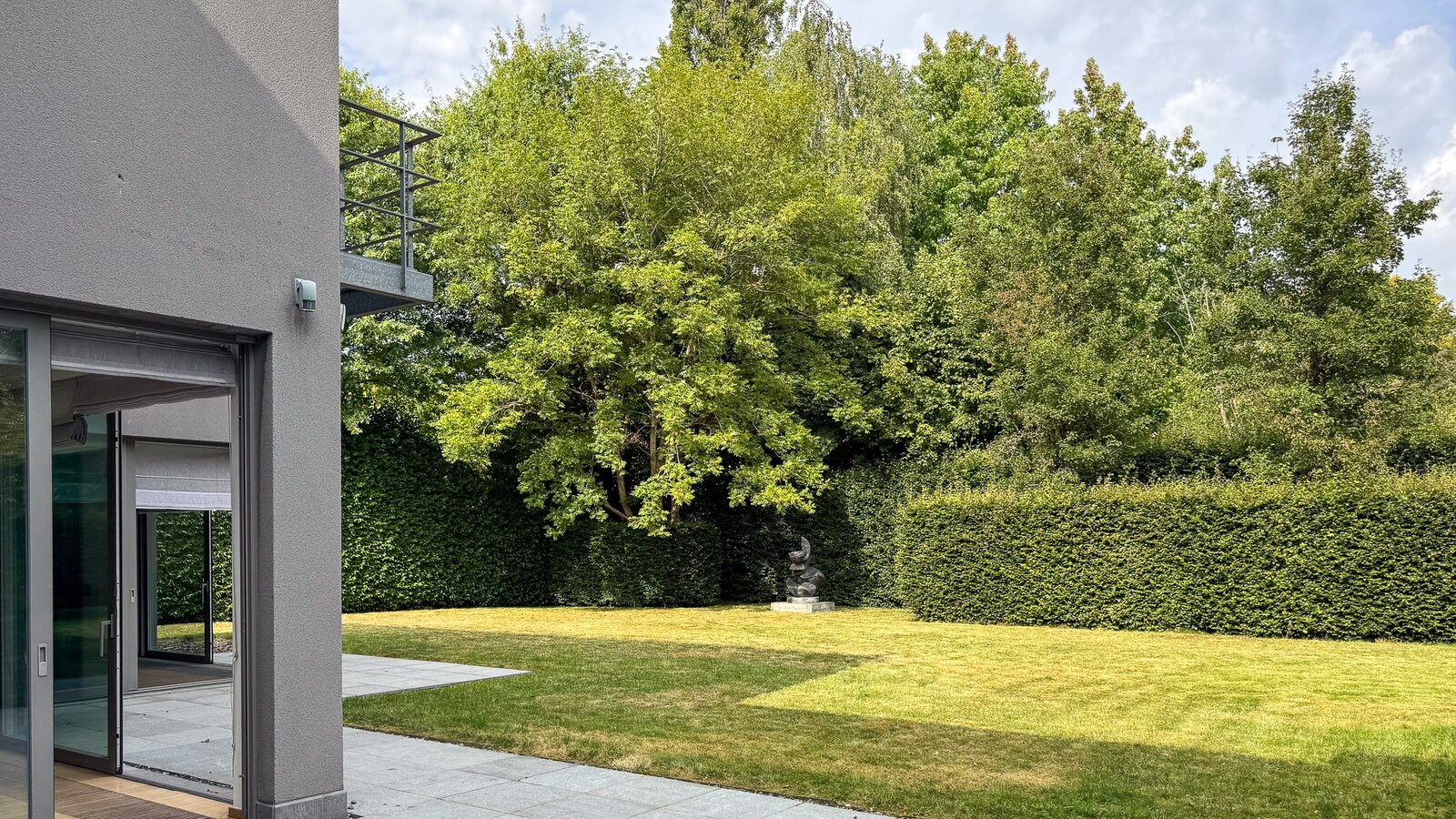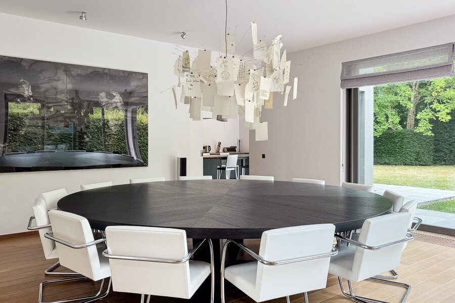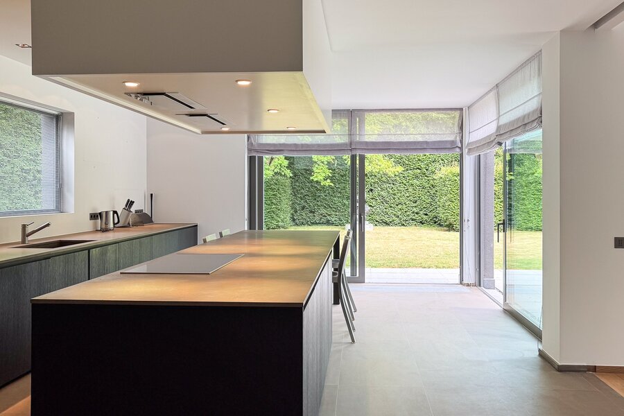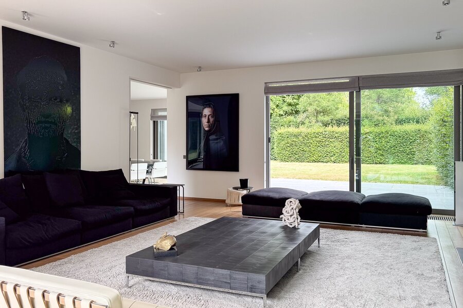 In de prestigieuze wijk Prins van Oranje biedt deze hedendaagse residentie, ontworpen door de gerenommeerde architect Marc Corbiau, een royale oppervlakte van ±934 m² (volgens EPB) op een perceel van ongeveer 28 are. Vanaf de ingang openen ruime ontvangstruimten, doordrenkt met natuurlijk licht, zich harmonieus naar een aangelegde tuin. De verfijnde, volledig uitgeruste keuken wordt aangevuld met een functionele bijkeuken, die perfect aansluit bij de onafhankelijke eetkamer en het kantoor.
