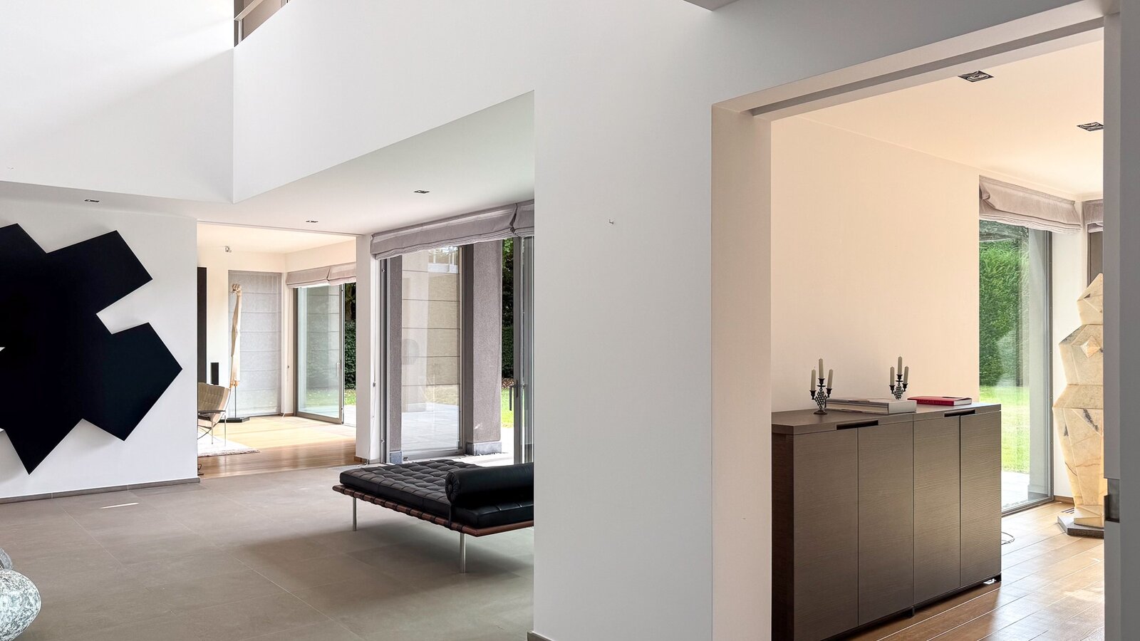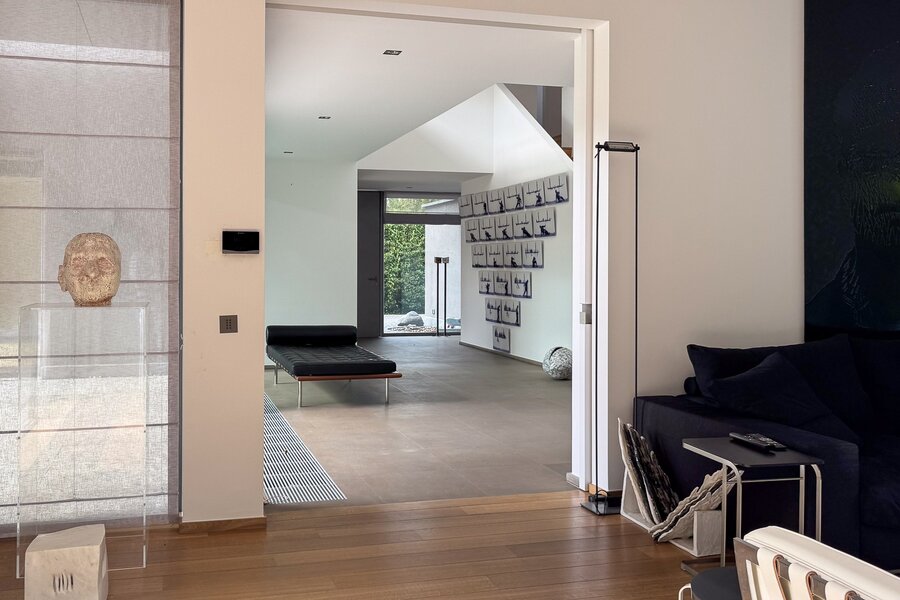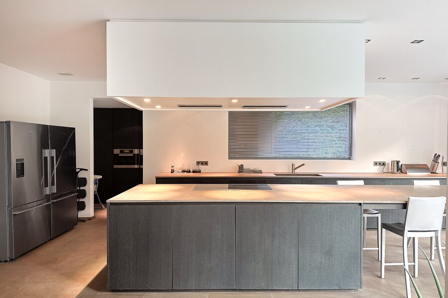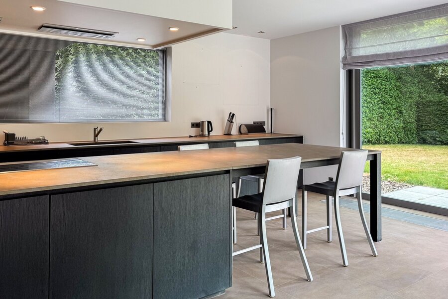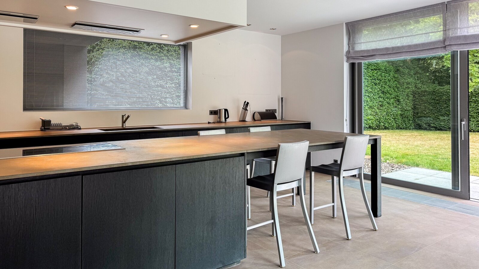 In de prestigieuze wijk Prins van Oranje biedt deze hedendaagse residentie, ontworpen door de gerenommeerde architect Marc Corbiau, een royale oppervlakte van ±934 m² (volgens EPB) op een perceel van ongeveer 28 are. Vanaf de ingang openen ruime ontvangstruimten, doordrenkt met natuurlijk licht, zich harmonieus naar een aangelegde tuin. De verfijnde, volledig uitgeruste keuken wordt aangevuld met een functionele bijkeuken, die perfect aansluit bij de onafhankelijke eetkamer en het kantoor.