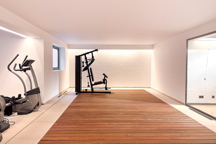 In de kelder vindt men een fitnessruimte, een binnenzwembad en ruime opslagruimtes. Een ruime garage voor drie voertuigen zorgt voor gemak en veiligheid. Dit uitzonderlijke pand, met een EPB-categorie D, combineert hoogwaardige voorzieningen met een buitengewone omgeving.