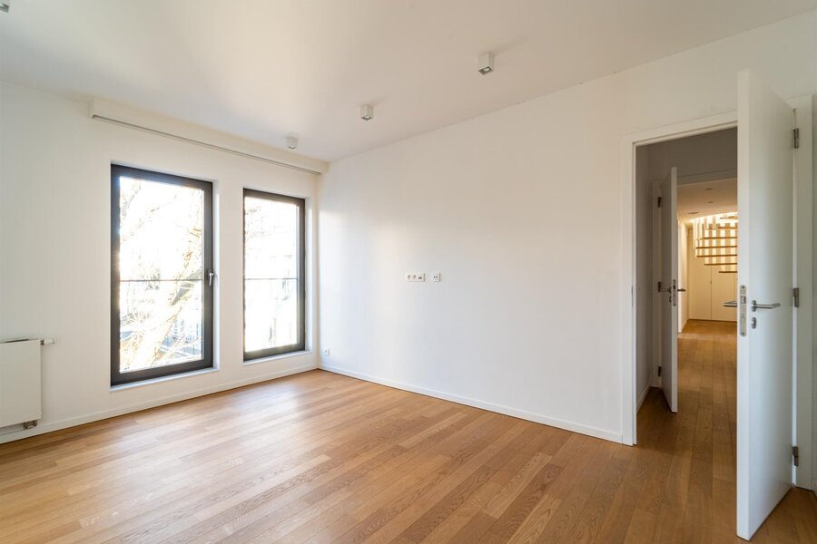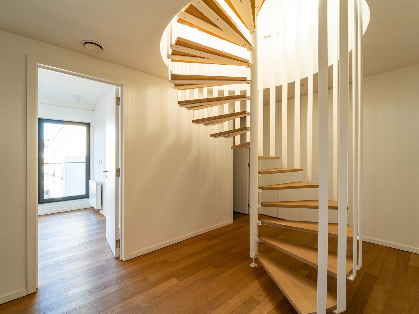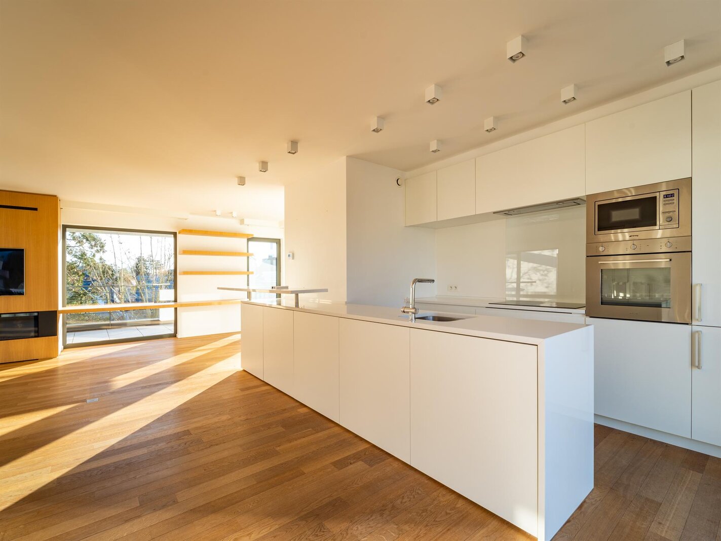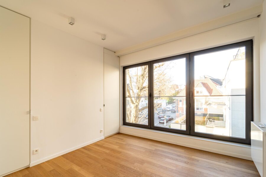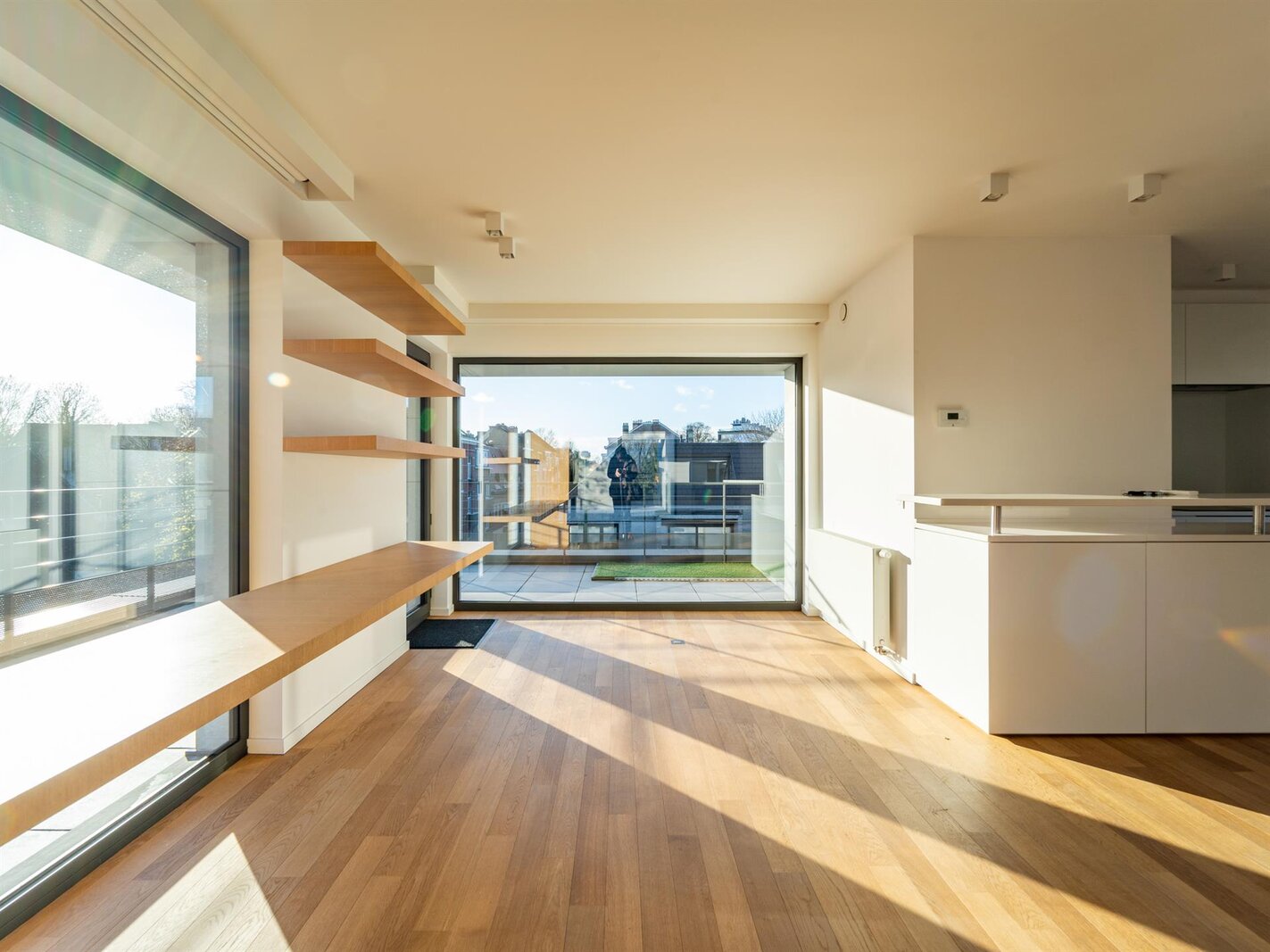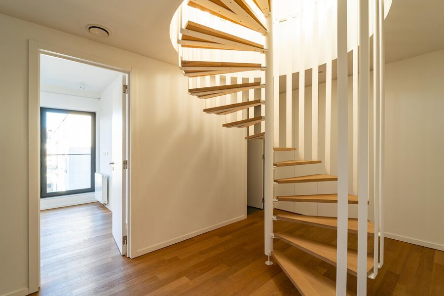 Gelegen in de wijk Vert Chasseur en op een steenworp afstand van het Ter Kamerenbos, biedt dit duplex penthouse met drie slaapkamers een bruto vloeroppervlakte van ± 185 m² (EPC) en een terras van ± 50 m² op het zuidoosten.