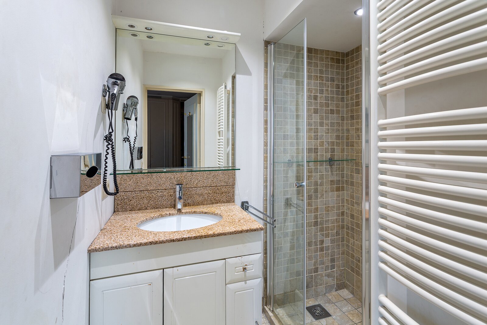 De nachthal geeft u toegang tot een apart toilet en de derde SLAAPKAMER en BADKAMER uitgerust met douche en wastafel.
