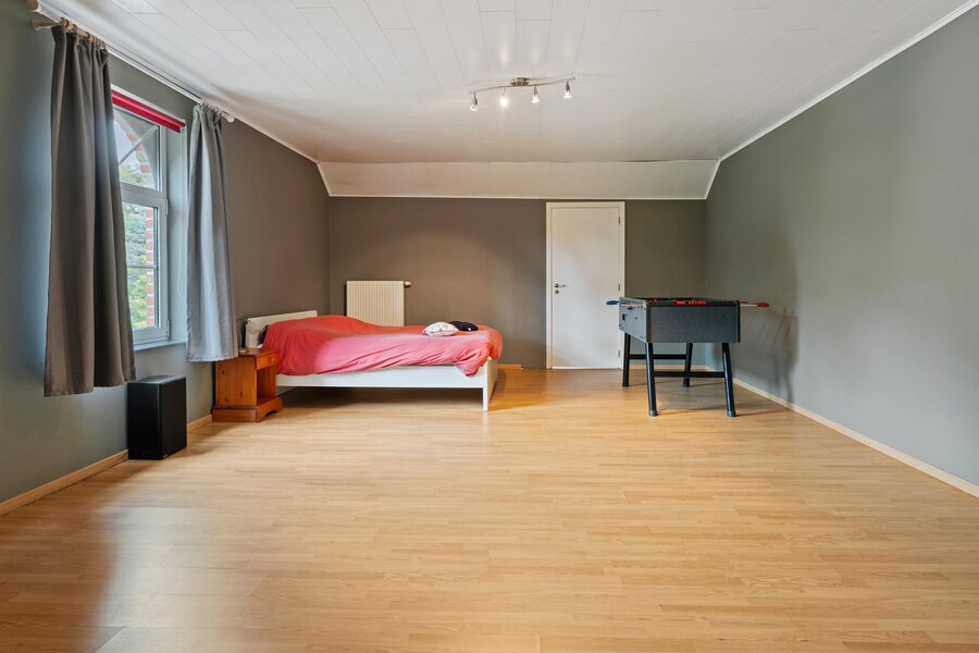 Verdieping: momenteel 2 slaapkamers, waarvan 1 nog verder af te werken; extra bergruimte aansluitend aan de tweede kamer.