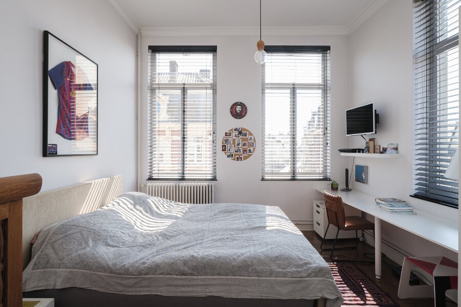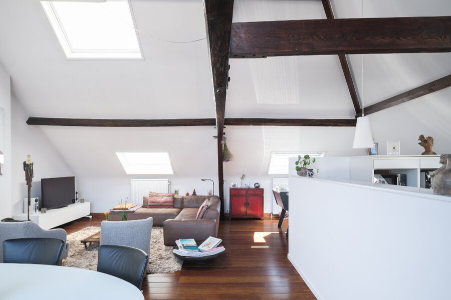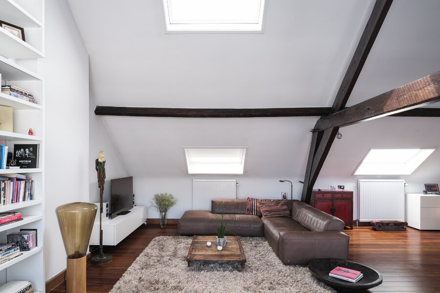 Op de tweede verdieping vinden we een ruime overloop, drie volwaardige slaapkamers en een recent vernieuwde badkamer met inloopdouche. De bovenste verdieping is ingericht als sfeervolle leefruimte met aansluitend een dakterras dat een magnifiek uitzicht biedt over de stad. Uitgesneden uit het dakvolume biedt het terras een zonnige, beschutte plek met bijzonder veel privacy.