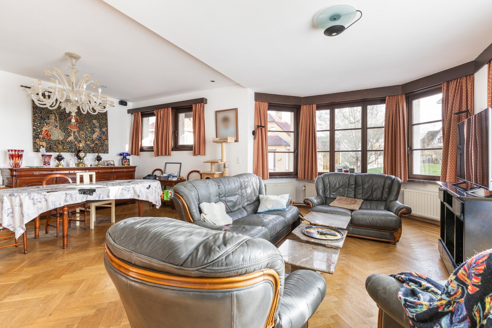 Bij binnenkomst leidt de inkomhal naar een aparte keuken en een bijzonder ruime, lichtrijke woonkamer en een apart toilet. De woning telt maar liefst zes slaapkamers, waarvan vier uitgerust met een eigen aansluitende badkamer – perfect voor grote gezinnen, gasten of het creëren van luxe suites.