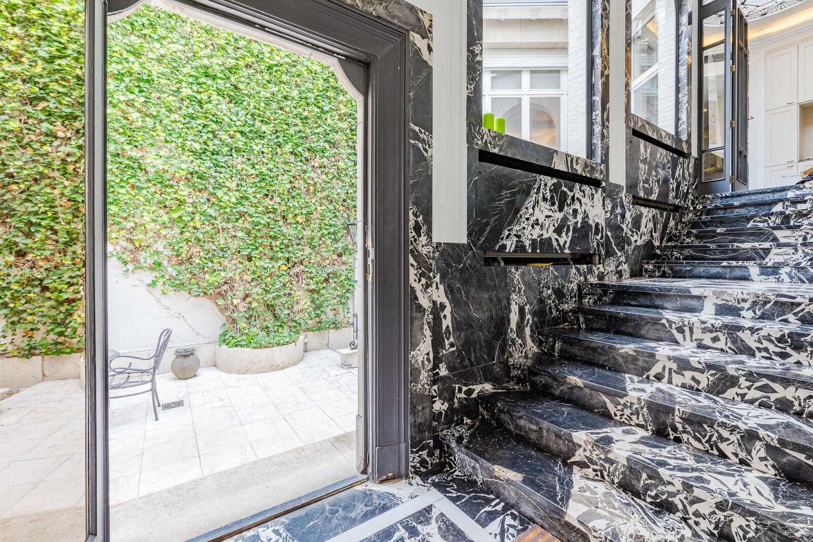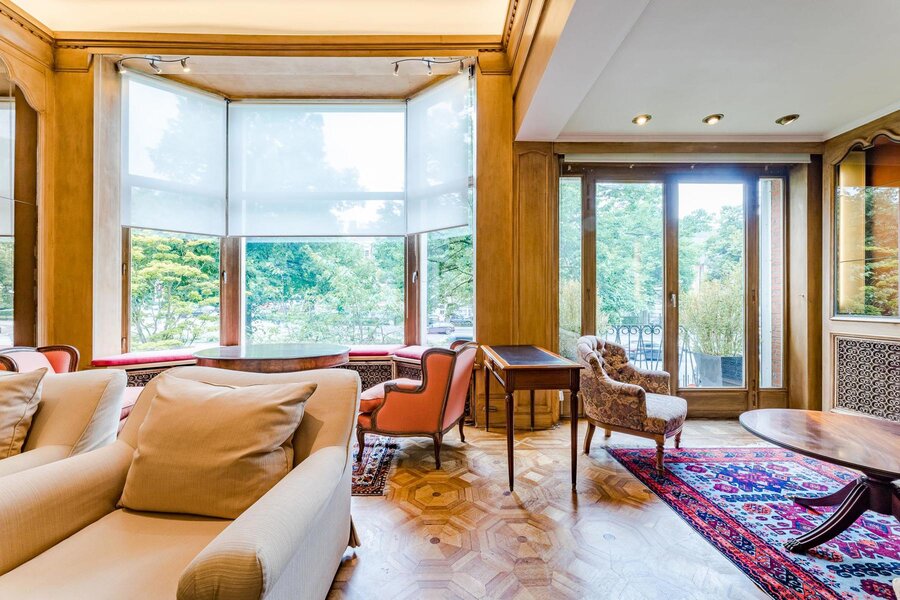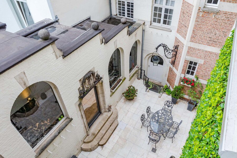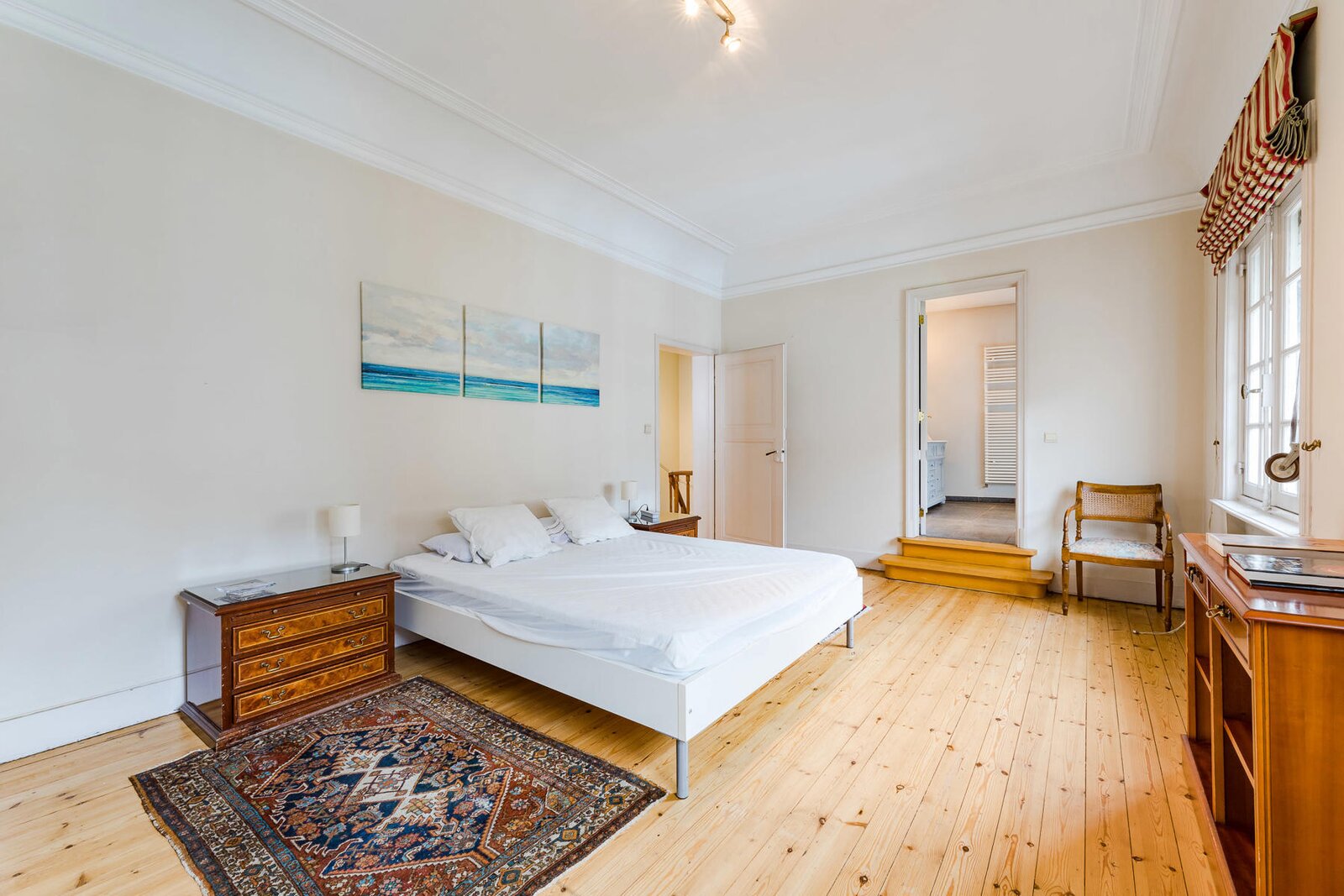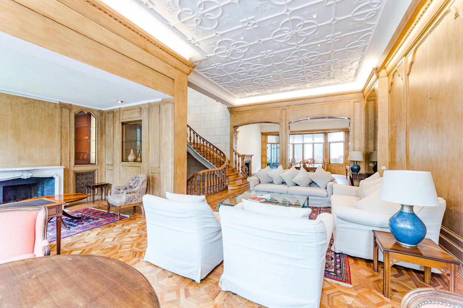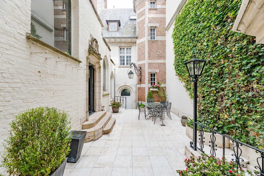 Dit mooie, atypische herenhuis ligt aan de Franklin Rooseveltlaan, op 2 passen van het Terkamerenbos en de Abdij, en straalt één en al charme uit. Bestaande uit twee met elkaar verbonden gebouwen, biedt het in het hoofdgebouw zeer mooie recepties, een ultra-uitgeruste keuken en, op de bovenverdiepingen, 4 slaapkamers met elk een eigen doucheruimte, evenals op maat gemaakte kasten of een kleedkamer. De benedenverdieping biedt de mogelijkheid tot het uitoefenen van een vrij beroep of zou een zeer aangenaam gastenappartement kunnen worden. Het tweede gebouw, gelegen aan de Congolaan, biedt een garage voor meerdere auto's en een duplexflat met 2 slaapkamers en elk een eigen doucheruimte. Meerdere parkeerplaatsen vervolledigen dit ongewoon en zeldzaam object, evenals een heerlijke binnenplaats in Italiaanse stijl, beschut tegen inkijk.