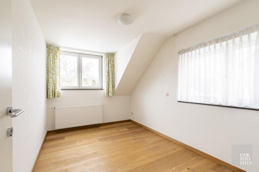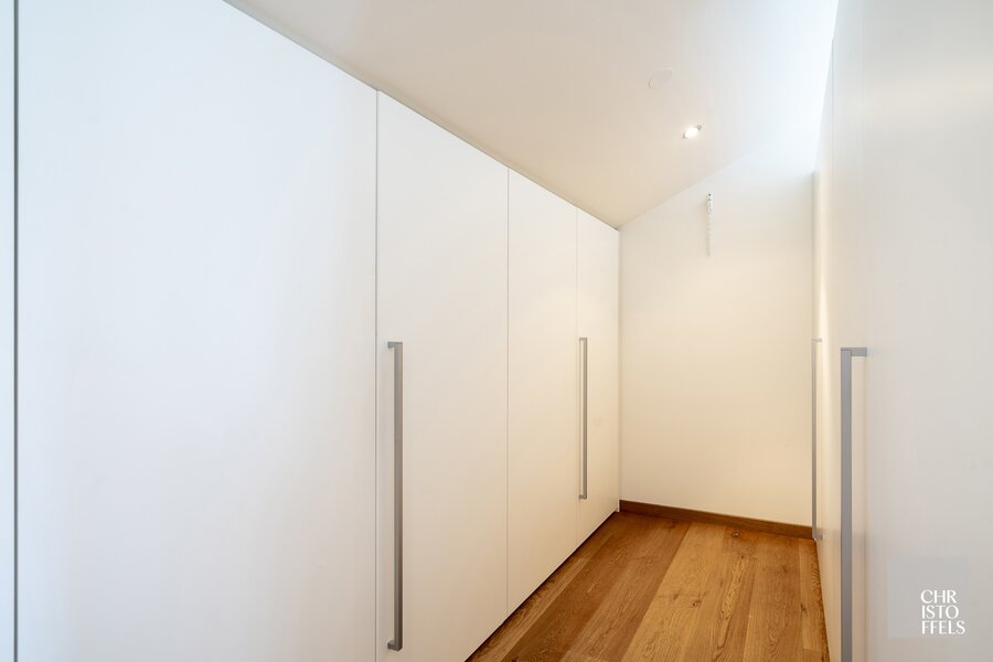 De verdieping is voorzien van 3 slaapkamers, waarvan de masterbedroom beschikt over een privé-dressing en een dakterras. Tevens is er nog een badkamer en een wasruimte.