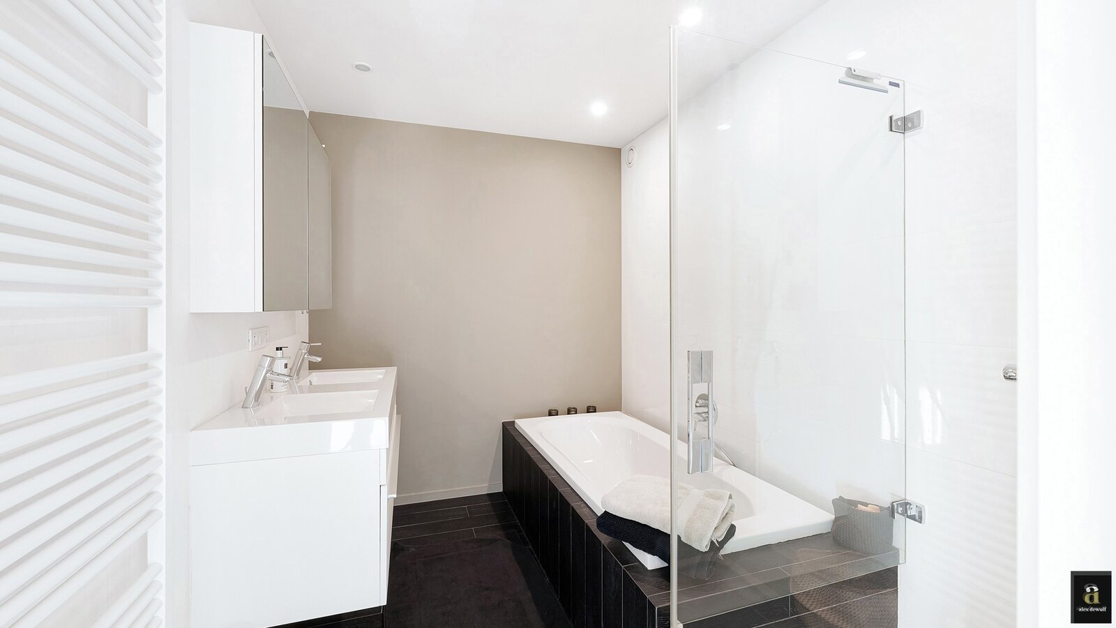Dit appartement werd ingericht met hoogwaardige materialen en oog voor detail: maatkasten in elke kamer, inbouwspots, ingewerkte plinten, …