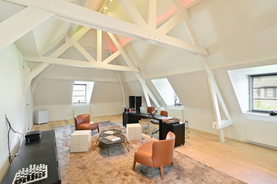 De tweede verdieping is ingericht als studio voorzien van een ruime zithoek / slaapkamer en douchekamer.