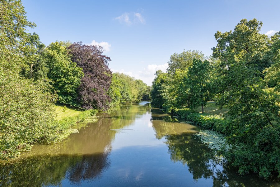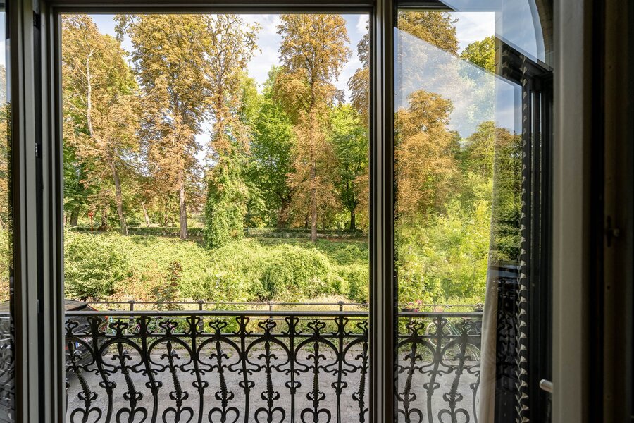 Uitziend op de ‘Groene Vesten ‘, met zijn beschermde plantsoenen, parkbomen,