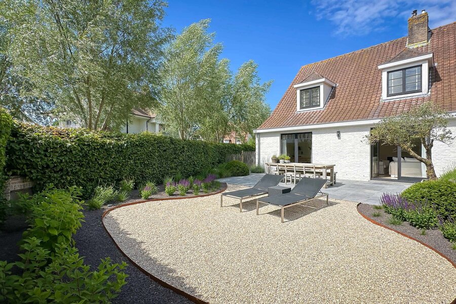 Koppelvilla met sfeervol ingerichte, perfect georiënteerde tuin, gelegen in een groene omgeving in Knokke...