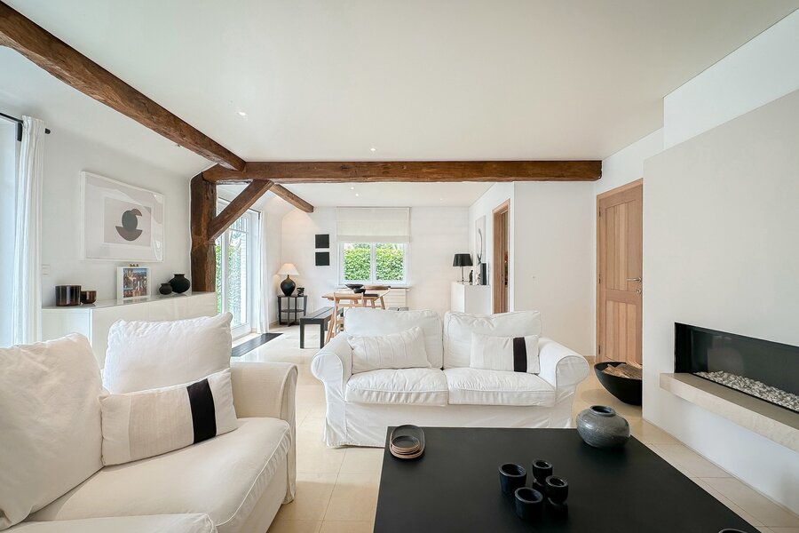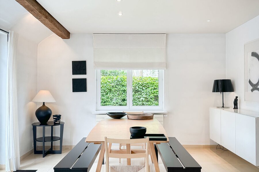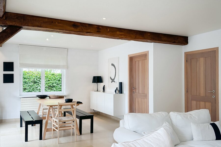Samenstelling: Ruime inkomhal voorzien van een gastentoilet en vestiaire. De zonnige woonkamer leidt naar een bijzonder aangenaam en gezellig terras, ideaal om te ontspannen en te genieten van de groene omgeving. De eetkamer sluit naadloos aan op de afzonderlijke, ruime keuken, die praktisch is ingericht en voorzien van alle moderne comfort.