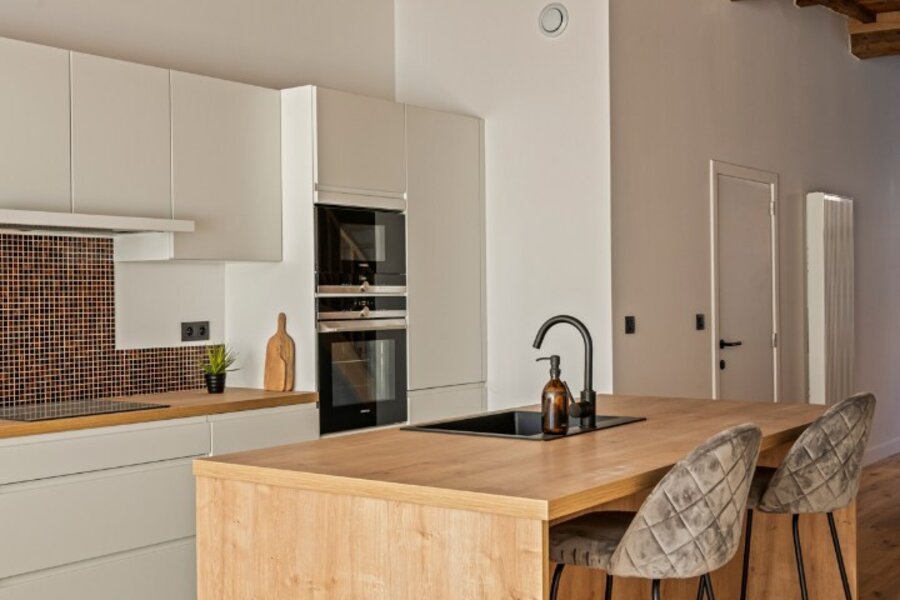 Daar de woning een totale renovatie is ondergaan geniet u hier van alle hedendaags comfort, zonder in te boeten aan authentiek karakter. Op ieder niveau werd de plafondhoogte gemaximaliseerd met behoud van de authentieke moer- en kinderbalken. Met een gunstig EPC-label B is deze woning niet alleen mooi, maar ook energiezuinig.