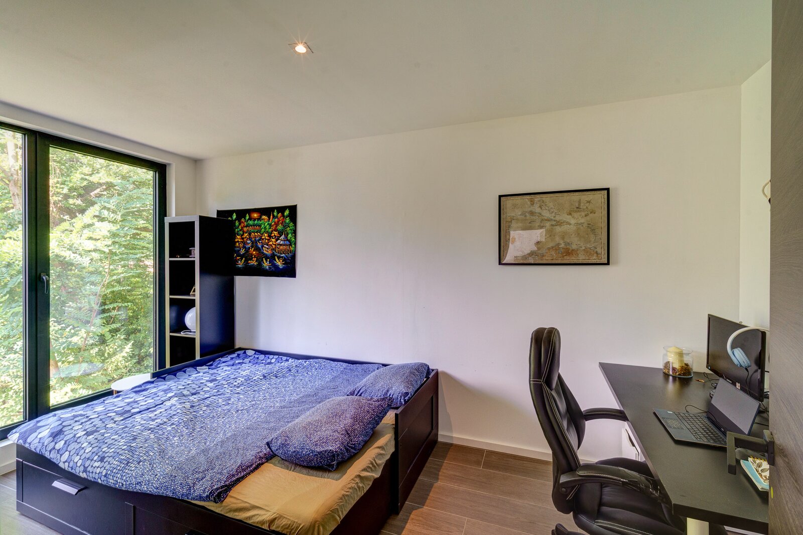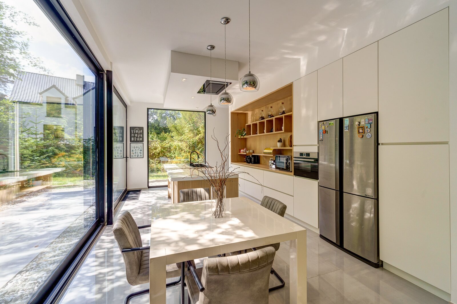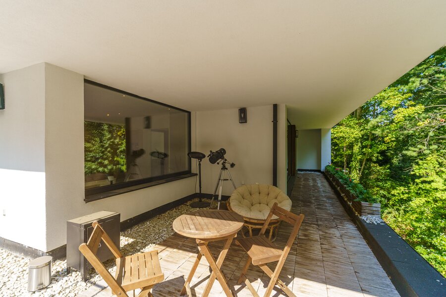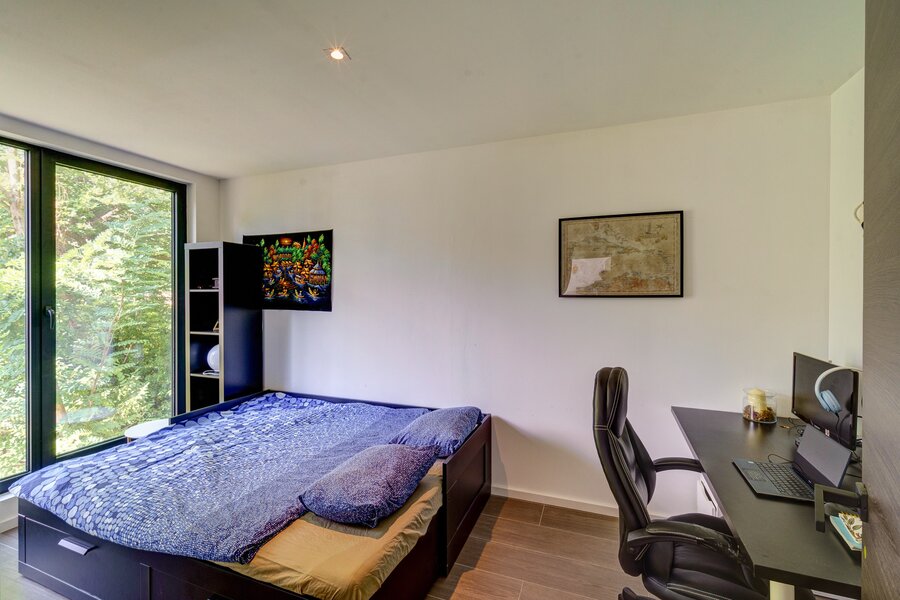 De open leefruimte vormt het hart van het huis en sluit naadloos aan op de designkeuken met maatwerkkasten en de gezellige veranda met zicht op de tuin. De master suite is pure verwennerij: een balkon, dressing en een ensuite badkamer met jacuzzi, inloopdouche en dubbele lavabo. Twee bijkomende slaapkamers delen een moderne badkamer met infrarooddouche en jets. Verder beschikt de woning over een bureau, wasplaats en technische ruimte.
