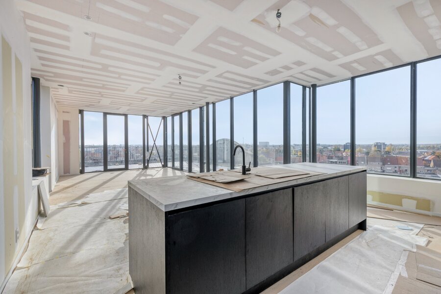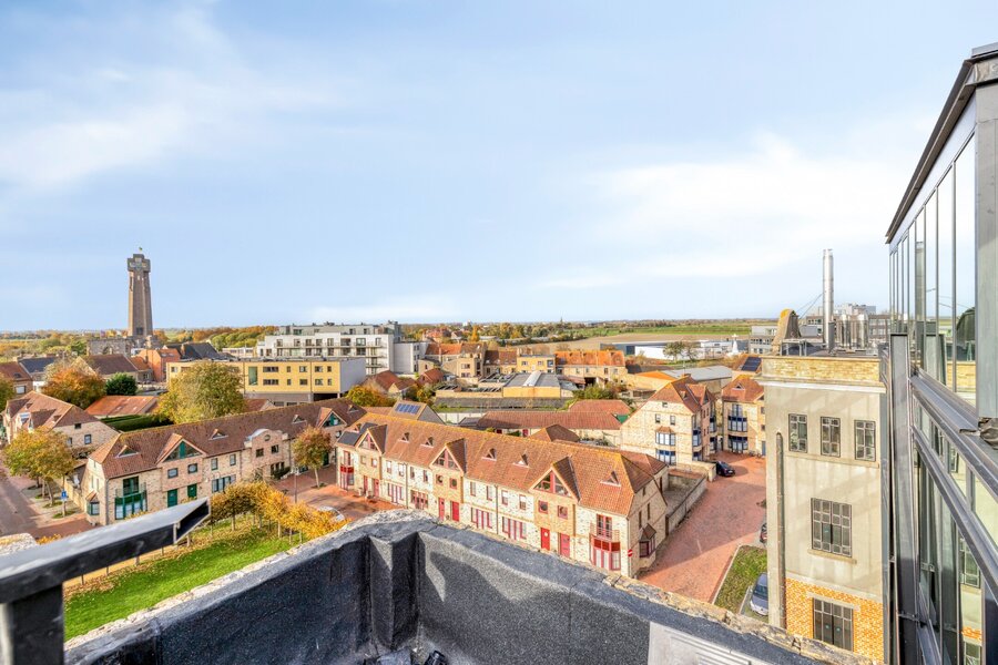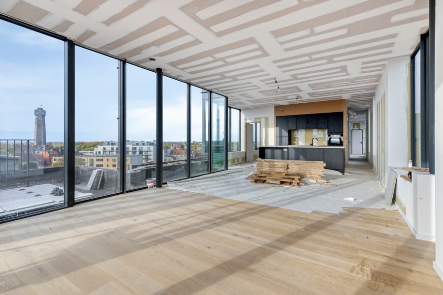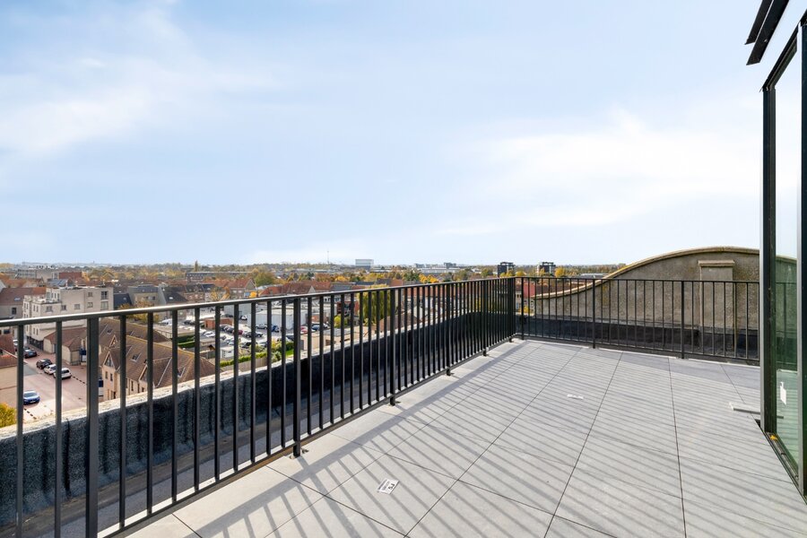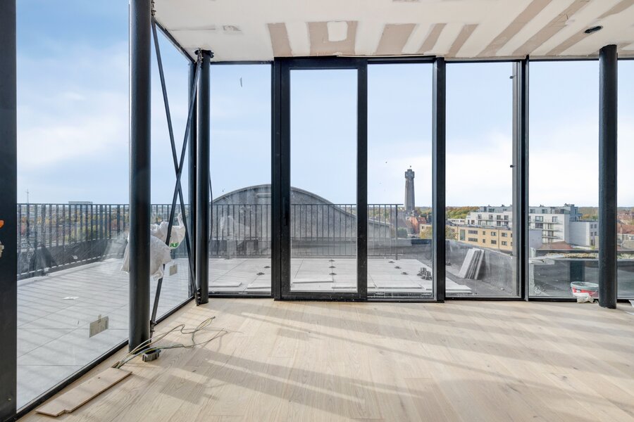 We bieden u één van de twee exclusieve penthouses aan, gelegen op de zesde verdieping. Het lichtrijke penthouse, met zijn talrijke raampartijen, wordt volledig nieuw gecreëerd (nieuwbouw onder btw-stelsel) en beslaat een bewoonbare oppervlakte van 149 m2. Dit unieke aanbod omvat de grootste terrassen van Diksmuide met samen een oppervlakte van 110 m2. Enerzijds hebben we een Zuidoost-georiënteerd terras gelegen aan de zijde van de woonkamer en anderzijds het West-georiënteerd terras grenzend aan de slaapkamers en wintertuin.