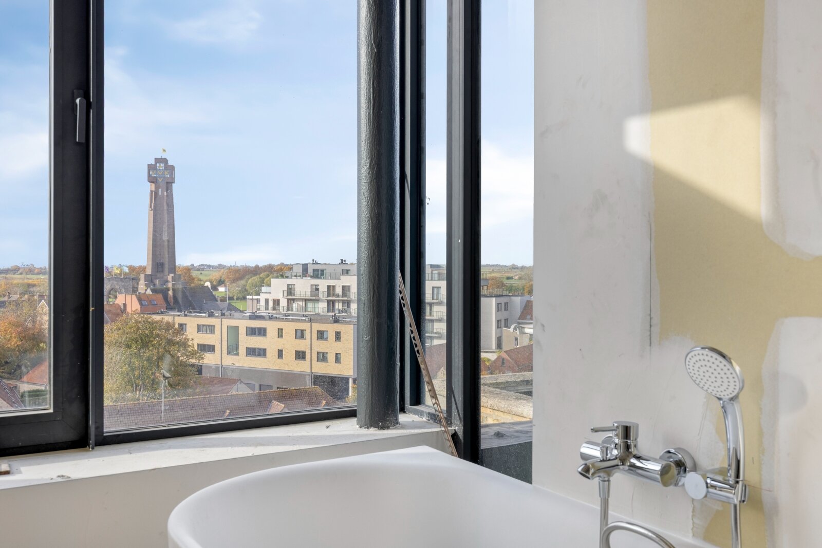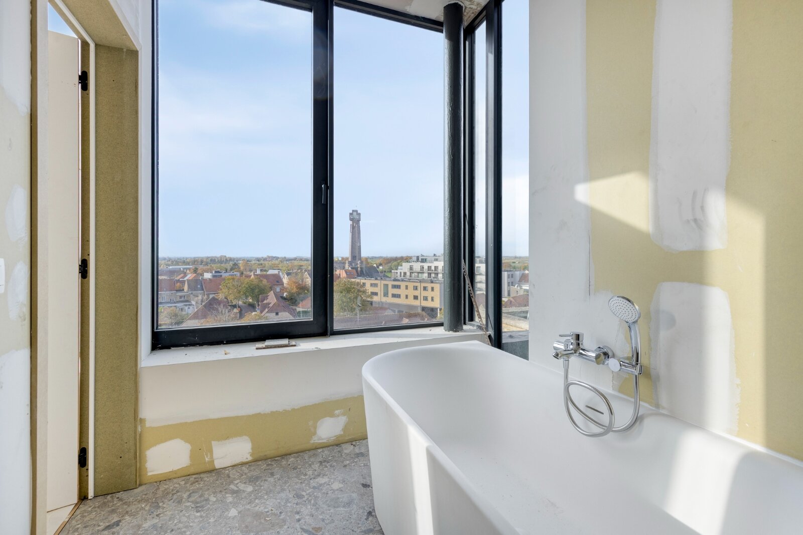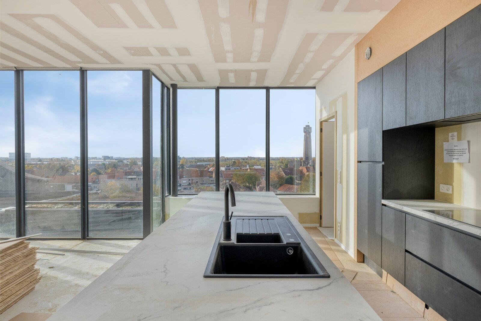 We bieden u één van de twee exclusieve penthouses aan, gelegen op de zesde verdieping. Het lichtrijke penthouse, met zijn talrijke raampartijen, wordt volledig nieuw gecreëerd (nieuwbouw onder btw-stelsel) en beslaat een bewoonbare oppervlakte van 149 m2. Dit unieke aanbod omvat de grootste terrassen van Diksmuide met samen een oppervlakte van 110 m2. Enerzijds hebben we een Zuidoost-georiënteerd terras gelegen aan de zijde van de woonkamer en anderzijds het West-georiënteerd terras grenzend aan de slaapkamers en wintertuin.